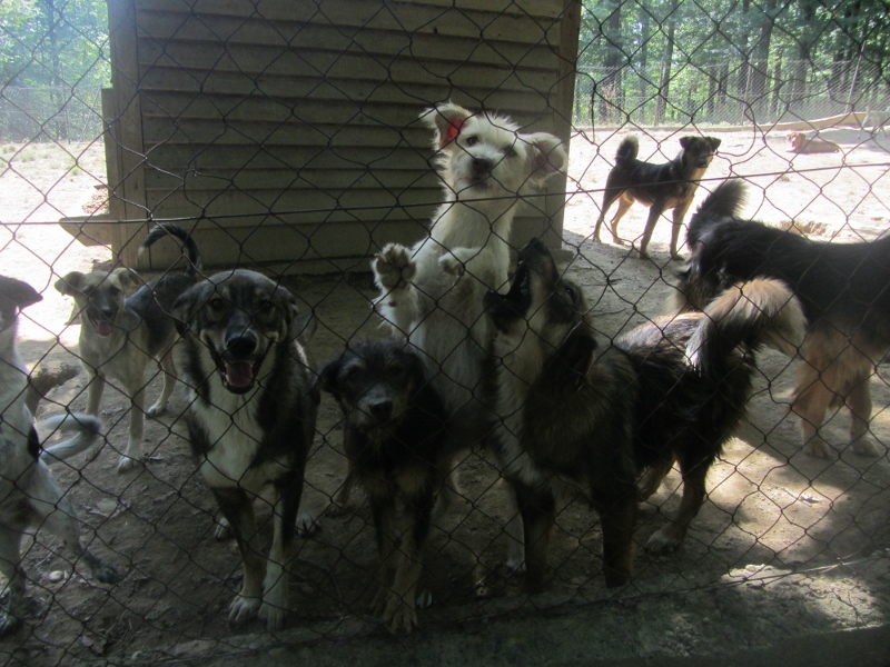Isoimmat koirat taas oli laitettu pieniin metallihäkkeihin. Yksi iso koira odotti omistajaansa, joka vapautuisi joskus vankilasta ja toinen koira oli myös tuotu sinne ”hoitoon” joksikin aikaa, mutta johtaja epäili, että sitä tuskin koskaan sieltä pois haettaisiin. Tarhan miestyöntekijä ja johtaja olivat ihmeissään tuomistamme tuliaisista. Veimme tarhalle 200kg kuivaruokaa, kassillisen leluja ja luita. Koirat olivat ikionnellisia saamistaan herkuista ja luista! Lelut kiinnostivat aluksi vain muutamia koiria, sillä koirat vain halusivat ihmisen huomiota, joten koirat eivät aluksi pystyneet keskittymään leluilla leikkimiseen. Mutta kun lähdimme pois häkeistä, koirat alkoivat keskenään leikkimään leluilla ja kantoivat niitä suussaan intoa täynnä :). Tarha-aitaukset olivat onneksi kohtuullisen isot, mutta tarhan koirilla ei ollut minkäänlaisia koirankoppeja tai kattoa pään päällä suojanaan.