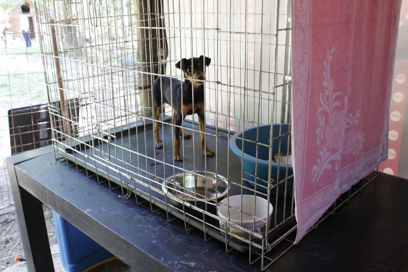Tarhan piha-alue oli melko suuri, mutta koirat pääsivät kerran päivässä lyhyeksi ajaksi jaloittelemaan. Häkkirivistö oli surullisen näköinen. Häkit olivat erittäin pieniä, ja yhdessä häkissä saattoi olla viisikin koiraa. Yksi koira jäi erityisesti mieleeni; se oli keskikokoinen ja hyvin kaunis koira. Se roikotti toista takajalkaa mukanaan. Jalka oli pahan näköinen ja aivan luonnottomassa asennossa.