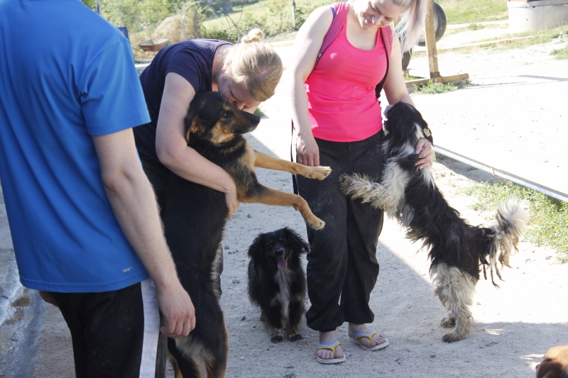 Se oli vilskettä ja vauhtia täynnä. Näiden aitauksessa vietin luultavasti eniten aikaa. Tofun ja Bernin aitauksessa on yhteensä kahdeksan koiraa. Ihmettelen suuresti, kuinka Tofu-neiti on vieläkin tarhalla. Kiltimpää koiraa tuskin olen tavannut. Berni taas oli aina paidanhelmassa roikkumassa lempeällä leikkiotteella. Tofu ja Berni tulivat tutuiksi ja toki muutkin koirat tässä aitauksessa. Nämä koirat ovat niin iloa ja toivoa täynnä ja näiden vuoksi haluan entistä enemmän tehdä koirien eteen töitä. Pääsisimpä pian jo takaisin Bosniaan, näistä koirista tuli viikossa kuin omia koiria.