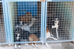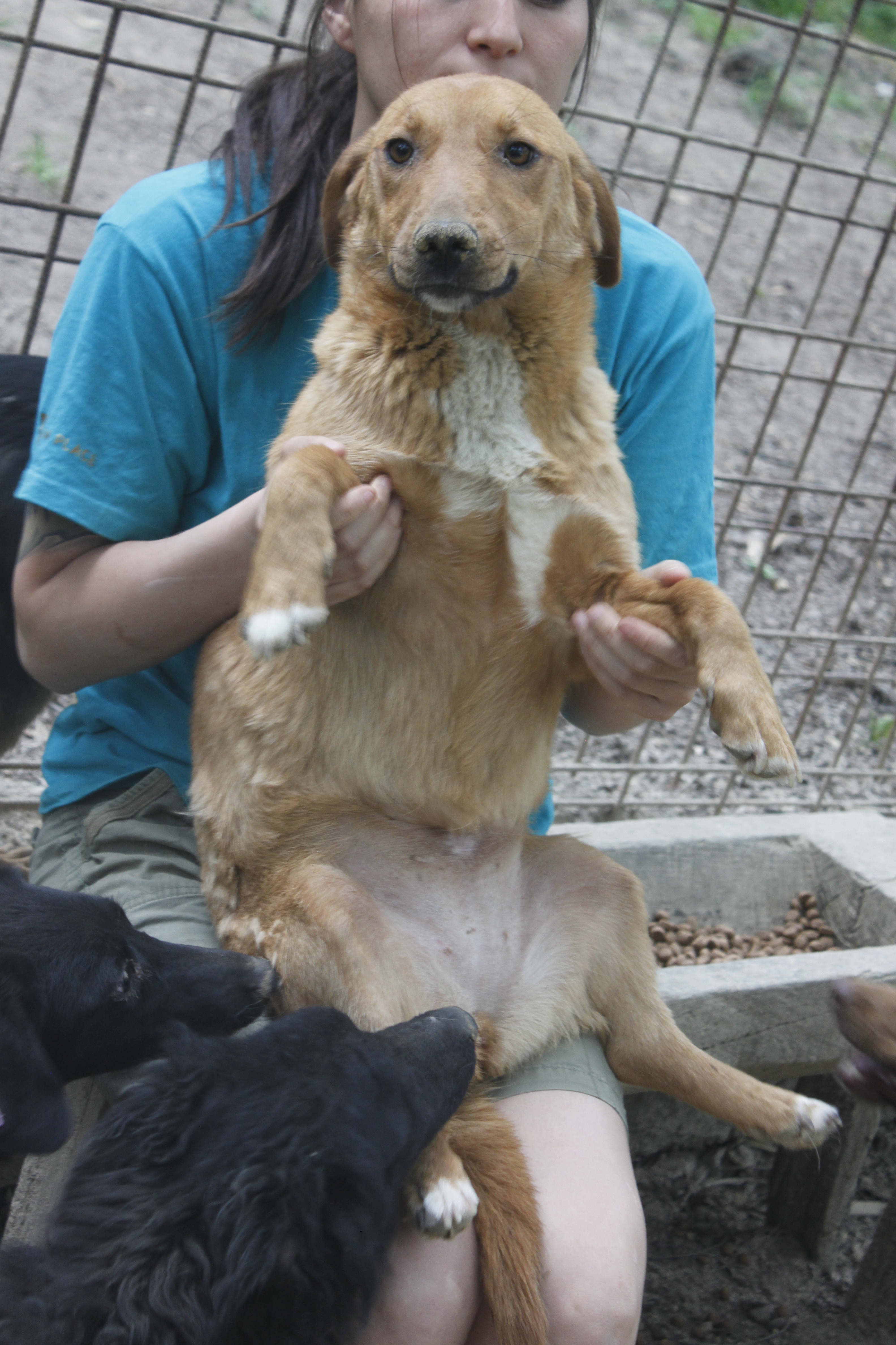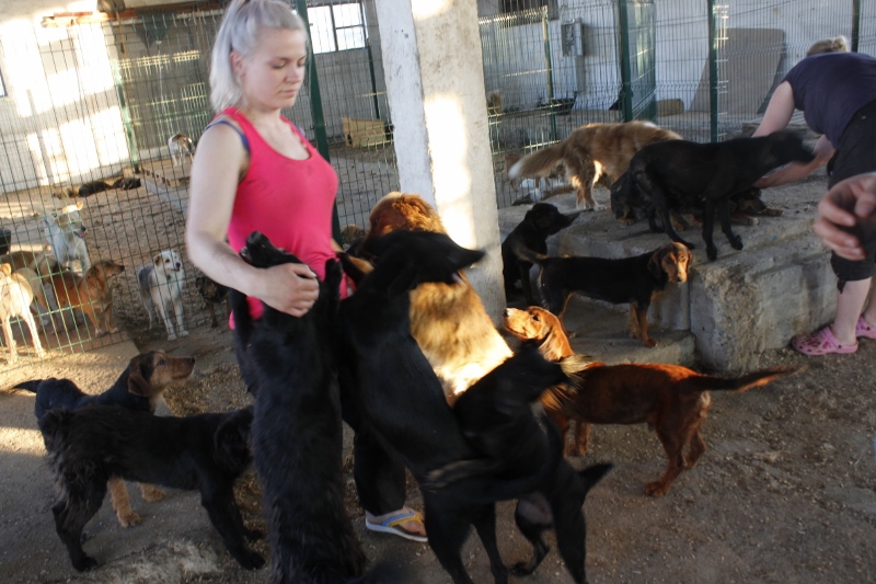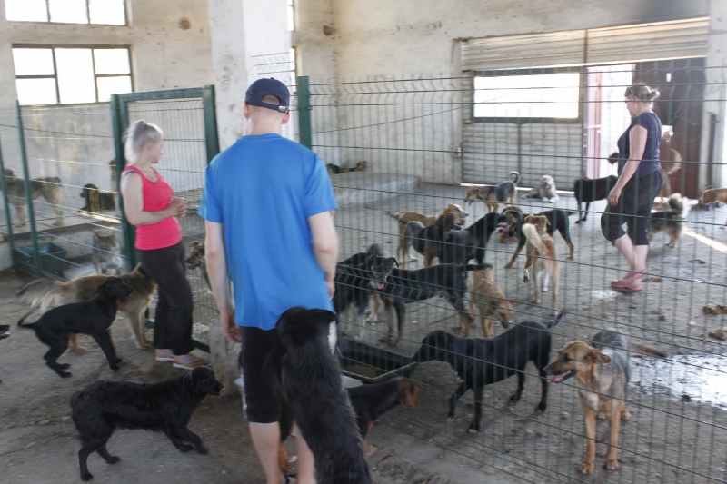 Häkkejä erottavat ovet olivat lukossa, jotta tappeluita ei tulisi enempää. Koirat silti osasivat kiivetä korkeiden metalliaitauksien yli. Kävimme jokaisen häkin läpi ja yritimme parhaamme mukaan tutustua uusiin koiriin ja tervehtiä vanhat tuttumme. Niissä olosuhteissa oli vaikeaa valita vain muutama koira kotia etsivien listalle, koska tarha oli täynnä ihania, erikokoisia ja –ikäisiä koiria. Ihmettelin kuinka koirat olivat kaikesta kokemastaan huolimatta erittäin kilttejä ja pienen tutustumisen jälkeen ne asettuivat jalkojen juureen rauhallisesti rapsuteltaviksi. Tarhalla meno oli silti hurjaa.