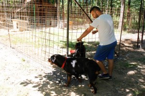 Kahtena ensimmäisenä päivänä tarhan iso laumanvartijasukuinen koira, Joca vältteli Joonasta ja oli hieman epäluuloinen. Kuulimme, että tarhan ohi kävelee miehiä, jotka kohtelevat koiria huonosti, josta koirille on tietysti jääneet hirveät muistonsa. Matkan aikana oli ihana nähdä, kuinka tämä maailman kiltein iso koira, Joca otti Joonaksen omakseen. Ensimmäisten päivien vältteleminen ja epäluuloiset katseet muuttuivat iloiseen hännänheilutukseen ja leikkiin Joonaksen nähdessään. Preslican tarhalla töitä riitti meille jokaiselle ja apukäsiä olisi tarvittu vieläkin enemmän.