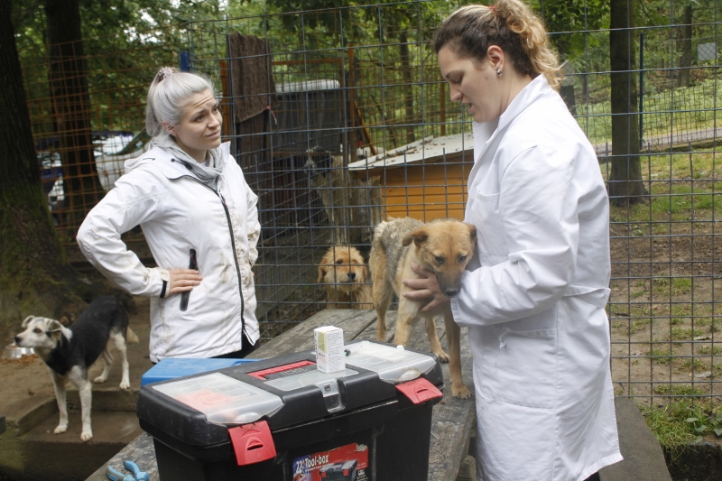 Koiria oli niin paljon, että kahakoita syntyi jatkuvasti. Kaikista arimmat koirat kyhjöttivät niin piilossa, kuin pystyivät. Näille toivoisi löytyvän nopeasti kotihoitopaikan Suomesta. Hallin sisätiloista veimme yhden koiran Bojanin kanssa toipumishuoneeseen, koska sillä oli puremahaava korvassa. Ihana oli kaikesta kurjuudesta huolimatta huomata, että näillä koirilla oli kuitenkin paikka Bojanin luona. Hän tekee yksin rankkaa, mutta sitäkin mahtavampaa työtä koirien eteen.
