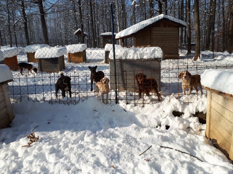 Tarhalla ollessamme lunta oli maassa monta senttiä. Päästimme koiria häkeistään juoksemaan ja leikkimään lumeen. Tämä oli ehdottomasti paras hetki tarhalla, sain nähdä edes hetken onnellisia koiria! Vaikka lumi tuotti iloa päivisin, yöt olivat jäätävän kylmiä. Käytimme tarhalla viimeiset heinät vuorataksemme koirien koppeja talvea varten.