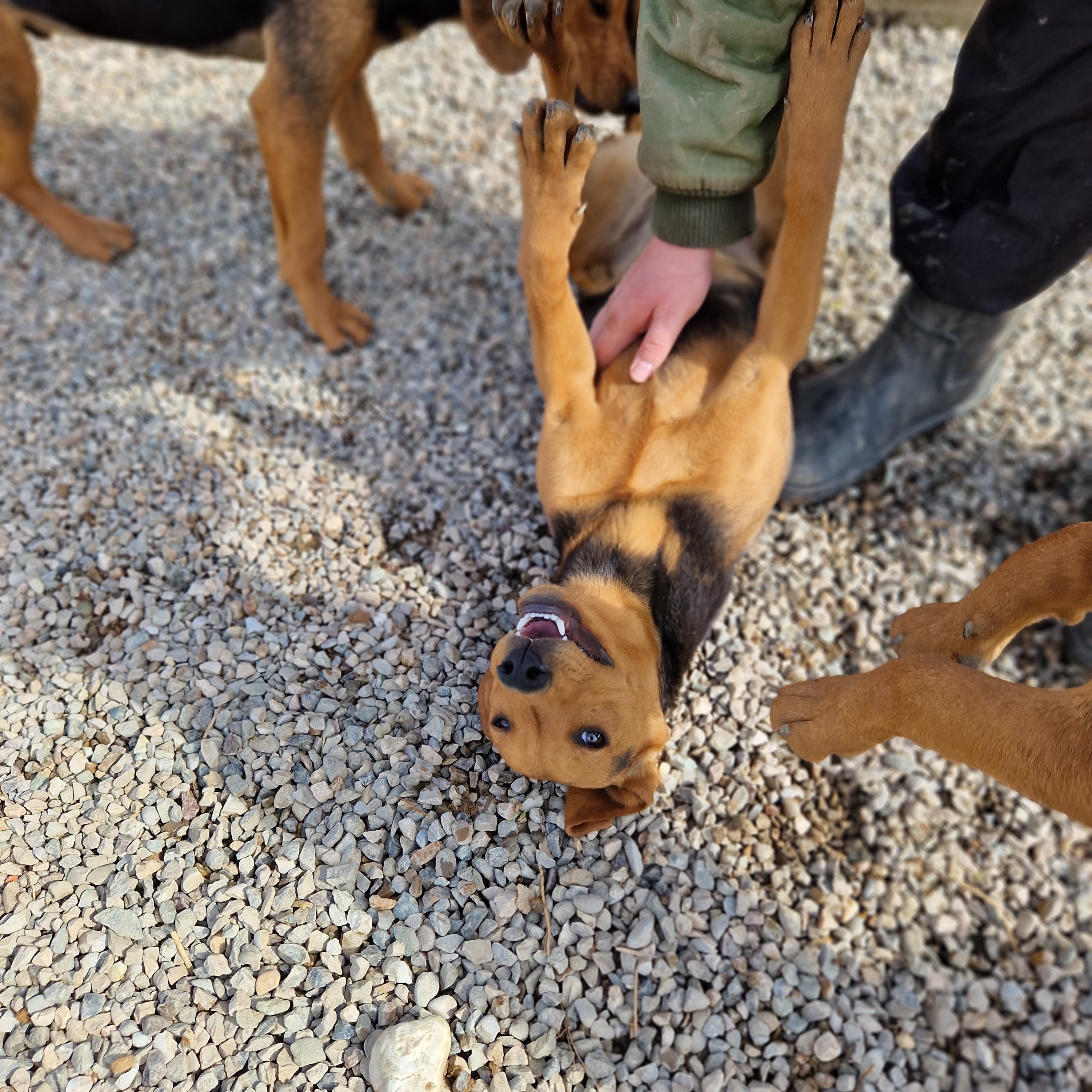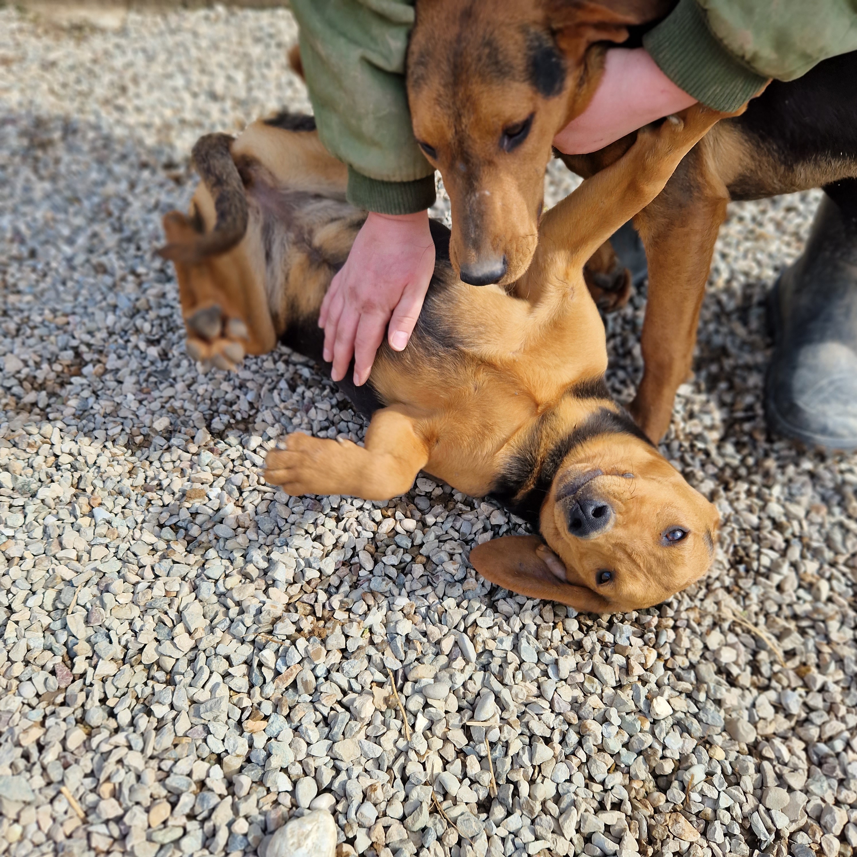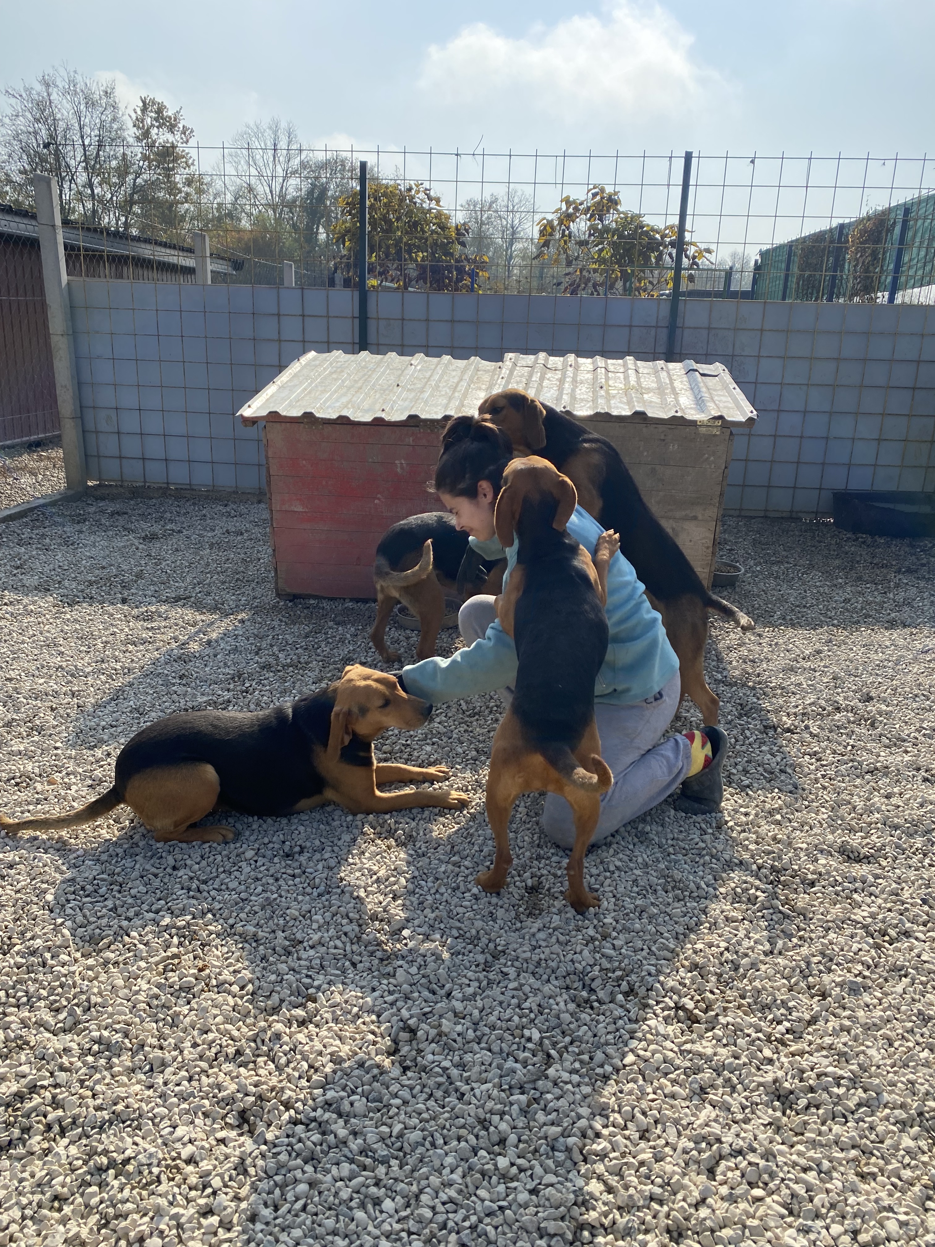 Entinen omistaja ei kohdellut koiriaan hyvin, joten pääsy turvakodille olikin oikeastaan onni tälle pentueelle. Nyt heillä on mahdollisuus löytää turvallinen koti, jossa saavat kaiken tarvitsemansa. Emo Sia on jo adoptoitunut Suomeen, joten pennut elävät nyt keskenään turvakodilla aitauksessa. He pääsevät juoksemaan aidatulla pellolla kaksi kertaa päivässä ja uskaltavat hienosti nuoresta iästään huolimatta olla myös muiden isompien koirien seurassa. Sisarusporukka on energinen, leikkisä ja paikoin riehakas. Sisarusten emo on keskikokoinen serbianajokoira. Metsästyskoiran energisyys näkyy tässä joukossa. Aktiivien vierailulla lokakuussa -24, heidän mennessä sisarusten häkkiin tekemään tuttavuutta, riiviöjoukko tunki jalkojen väliin ja kainaloihin, pusutteli niskaa ja napsi lempeästi nenänpäästä. He olivat silminnähden innoissaan saamastaan huomiosta. Sinikka on siskojensa tavoin energinen ja vauhdikas tyttö, joka hössöttää muiden mukana koirajoukossa. Vieraat ihmiset ovat selkeästi jännä juttu, mutta uteliasuus voittaa eikä Sinikka tiedä miten päin olla kaikessa innostuksessaan. Stressaava ympäristö varmasti tehostaa heidän vilkkauttaan ja omassa turvallisessa kodissa Sinikkakin oppisi varmasti rauhoittumaan rapsutuksille.