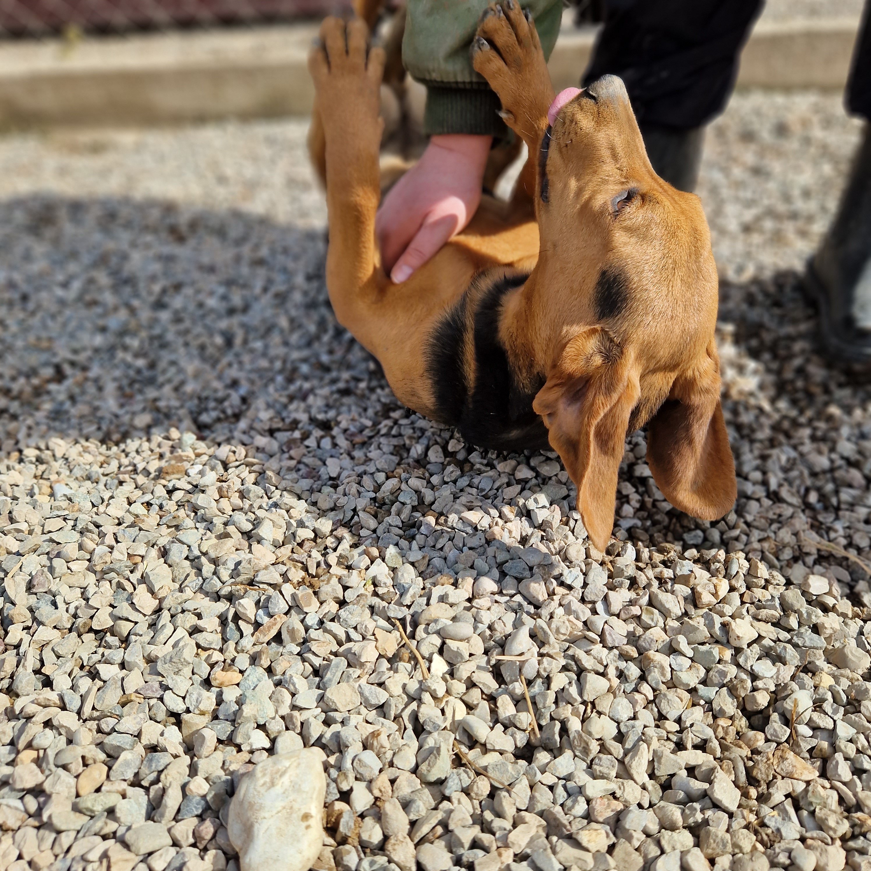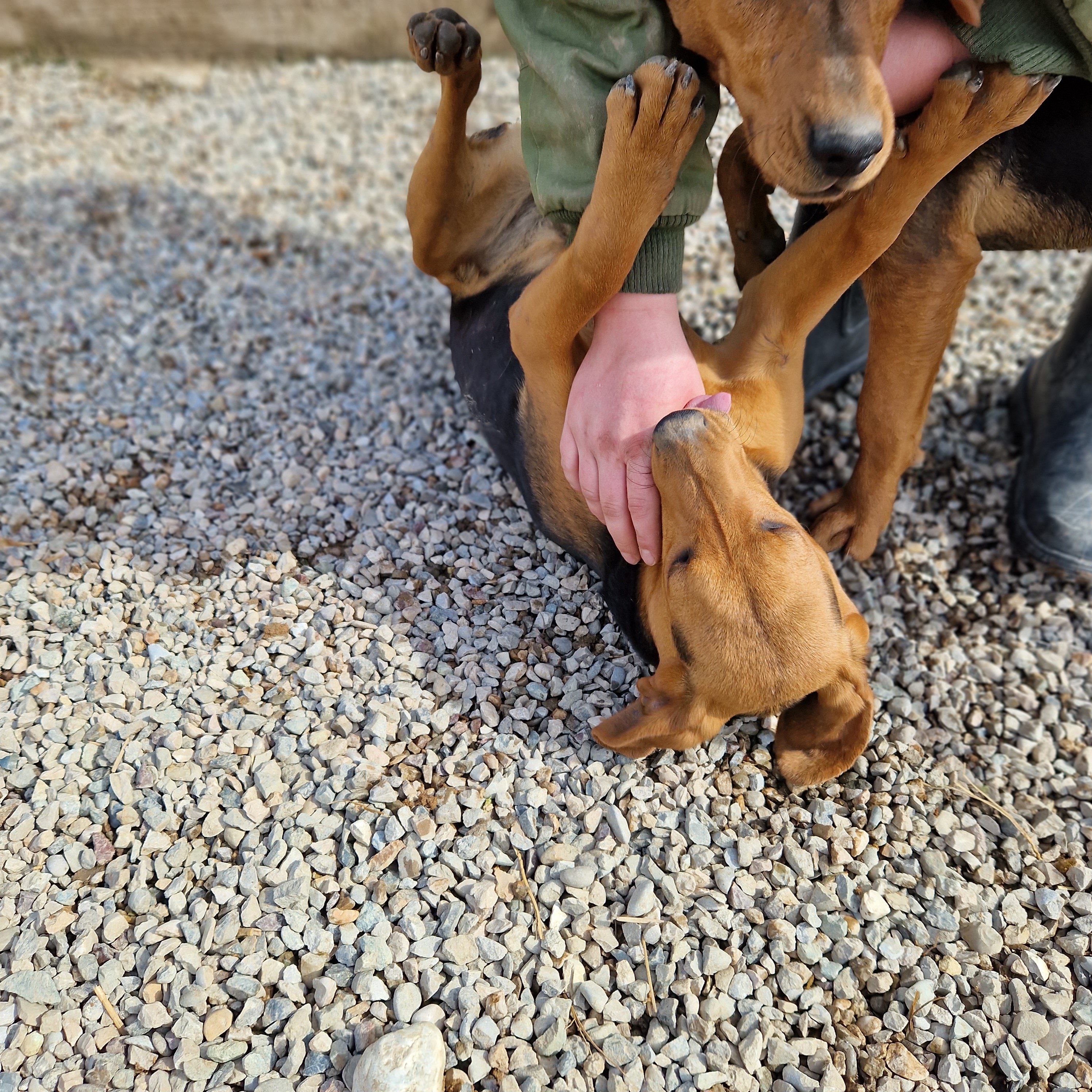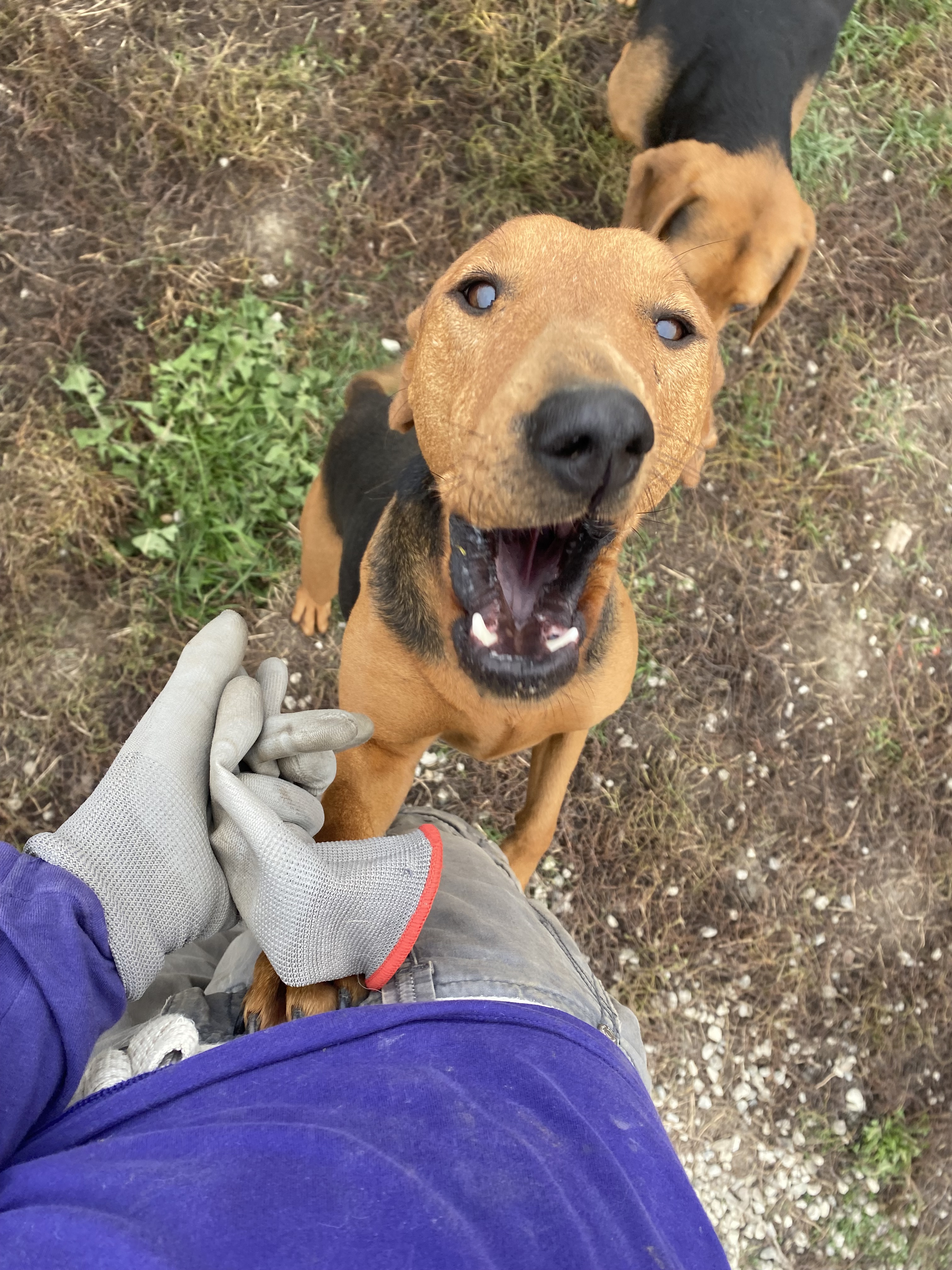Entinen omistaja ei kohdellut koiriaan hyvin, joten pääsy turvakodille olikin oikeastaan onni tälle pentueelle. Nyt heillä on mahdollisuus löytää turvallinen koti, jossa saavat kaiken tarvitsemansa. Emo Sia on jo adoptoitunut Suomeen, joten pennut elävät nyt keskenään turvakodilla aitauksessa. He pääsevät juoksemaan aidatulla pellolla kaksi kertaa päivässä ja uskaltavat hienosti nuoresta iästään huolimatta olla myös muiden isompien koirien seurassa. Sisarusporukka on energinen, leikkisä ja paikoin riehakas. Sisarusten emo on keskikokoinen serbianajokoira. Metsästyskoiran energisyys näkyy tässä joukossa. Aktiivien vierailulla lokakuussa -24, heidän mennessä sisarusten häkkiin tekemään tuttavuutta, riiviöjoukko tunki jalkojen väliin ja kainaloihin, pusutteli niskaa ja napsi lempeästi nenänpäästä. He olivat silminnähden innoissaan saamastaan huomiosta. Sinikka on siskojensa tavoin energinen ja vauhdikas tyttö, joka hössöttää muiden mukana koirajoukossa. Vieraat ihmiset ovat selkeästi jännä juttu, mutta uteliasuus voittaa eikä Sinikka tiedä miten päin olla kaikessa innostuksessaan. Stressaava ympäristö varmasti tehostaa heidän vilkkauttaan ja omassa turvallisessa kodissa Sinikkakin oppisi varmasti rauhoittumaan rapsutuksille.