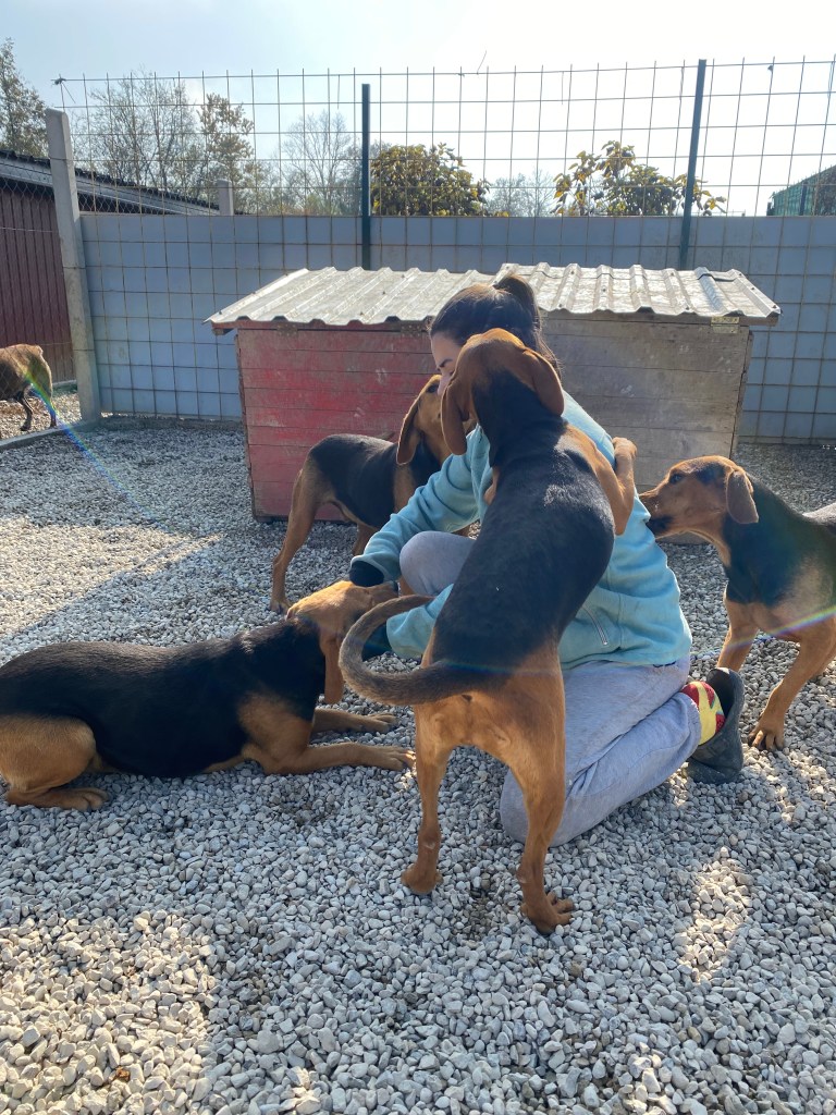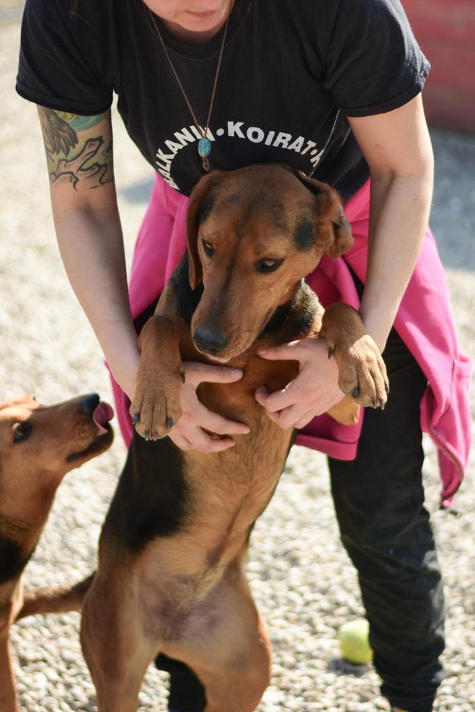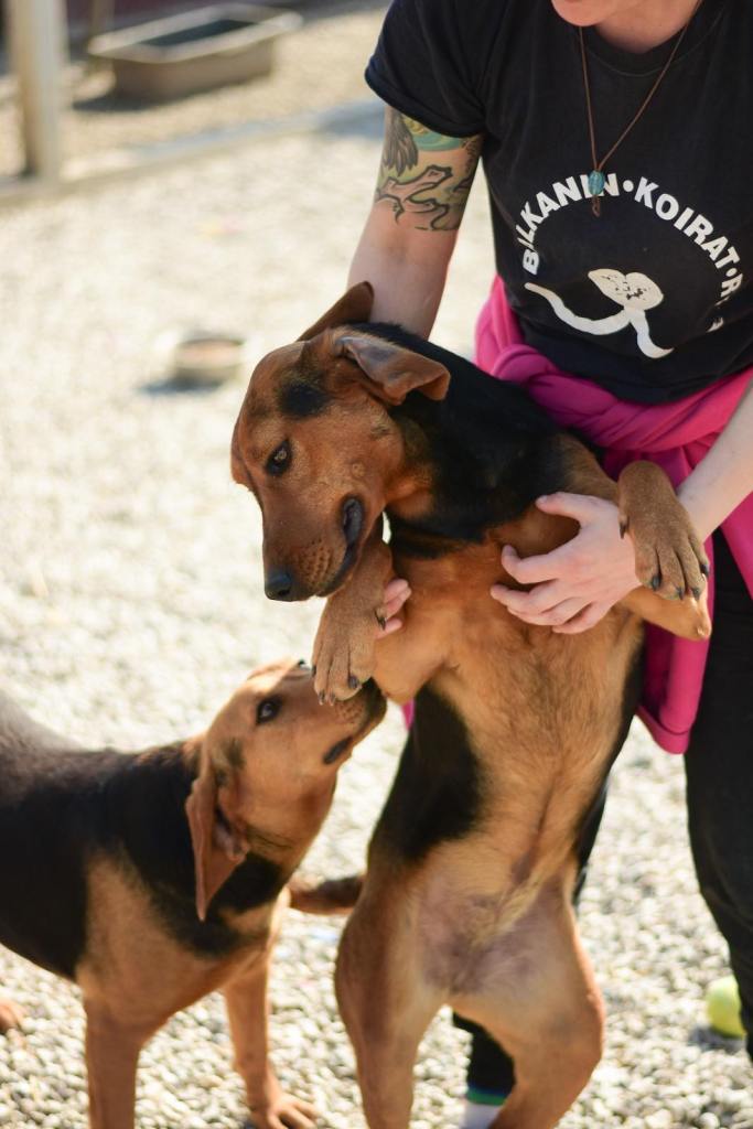 Entinen omistaja ei kohdellut koiriaan hyvin, joten pääsy turvakodille olikin oikeastaan onni tälle pentueelle. Nyt heillä on mahdollisuus löytää turvallinen koti, jossa saavat kaiken tarvitsemansa. Emo Sia on jo adoptoitunut Suomeen, joten pennut elävät nyt keskenään turvakodilla aitauksessa. He pääsevät juoksemaan aidatulla pellolla kaksi kertaa päivässä ja uskaltavat hienosti nuoresta iästään huolimatta olla myös muiden isompien koirien seurassa. Sisarusporukka on energinen, leikkisä ja paikoin riehakas. Sisarusten emo on keskikokoinen serbianajokoira. Metsästyskoiran energisyys näkyy tässä joukossa. Aktiivien vierailulla lokakuussa -24, heidän mennessä sisarusten häkkiin tekemään tuttavuutta, riiviöjoukko tunki jalkojen väliin ja kainaloihin, pusutteli niskaa ja napsi lempeästi nenänpäästä. He olivat silminnähden innoissaan saamastaan huomiosta. Salla on siskojensa tavoin iloinen ja kekseliäs tyttö, joka hieman jännityshössöttää häkissä vieraiden ihmisten kanssa. Hän on kovin utelias ihmisien suhteen ja ajan kanssa hänestä saa varmasti lojaalin ja reippaan ystävän.