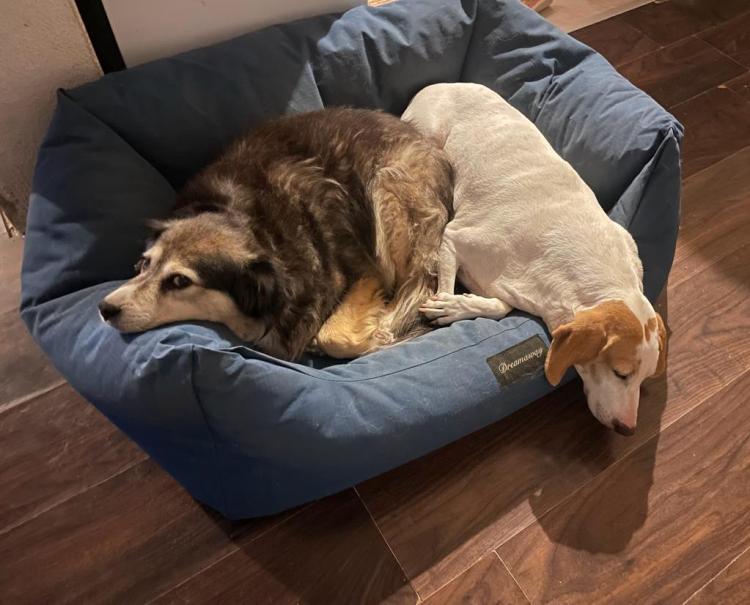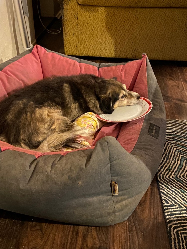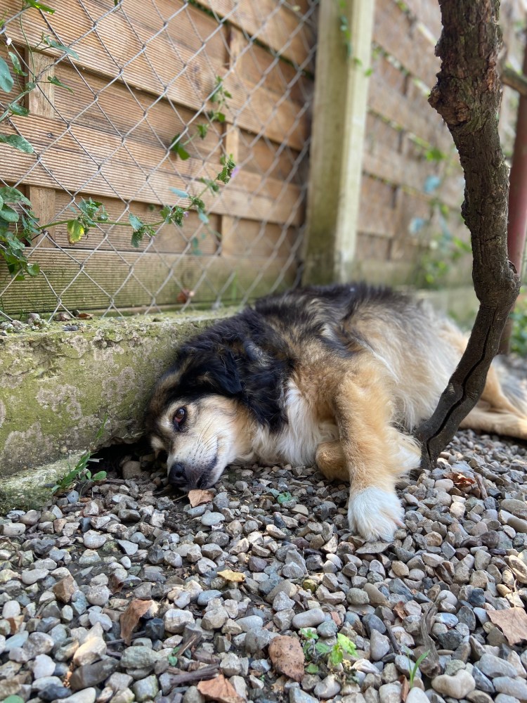 Turvakodille Sini on sopeutunut hyvin. Se asuu sisällä ja ulkoilee päivät muiden koirien kanssa sopuisasti. Koirat antavat Sinin olla omissa oloissaan ja Sini ei ole kauhean kiinnostunut muista koirista. Muutaman koiran kanssa se joskus vähän leikkii ja hassuttelee, mutta pääsääntöisesti Sini on itsenäinen mummukka 🙂 Kesähelteillä se tykkää makoilla lämpimässä auringonpaahteessa. Sini tunnistaa nimensä ja tulee kutsusta luokse. Se ei kuitenkaan tee itsestään mitään numeroa vaan helposti jää huomaamatta. Kun Sinin kerran huomaa, sitä ei voi olla huomaamatta uudestaan. Sini on aivan ihana, valloittava, omaperäinen ja omanlaisensa seniori, jolle mikään peti ei ole liian pehmeä. Miehiä Sini jännittää, ja syy on lienee yksityisellä tarhalla eletyissä vuosissa. Helmikuussa -24 Sini kävi jälleen hammaskivenpoistossa ja kilpirauhaskontrollissa. Kaikki oli tulosten mukaan kunnossa.