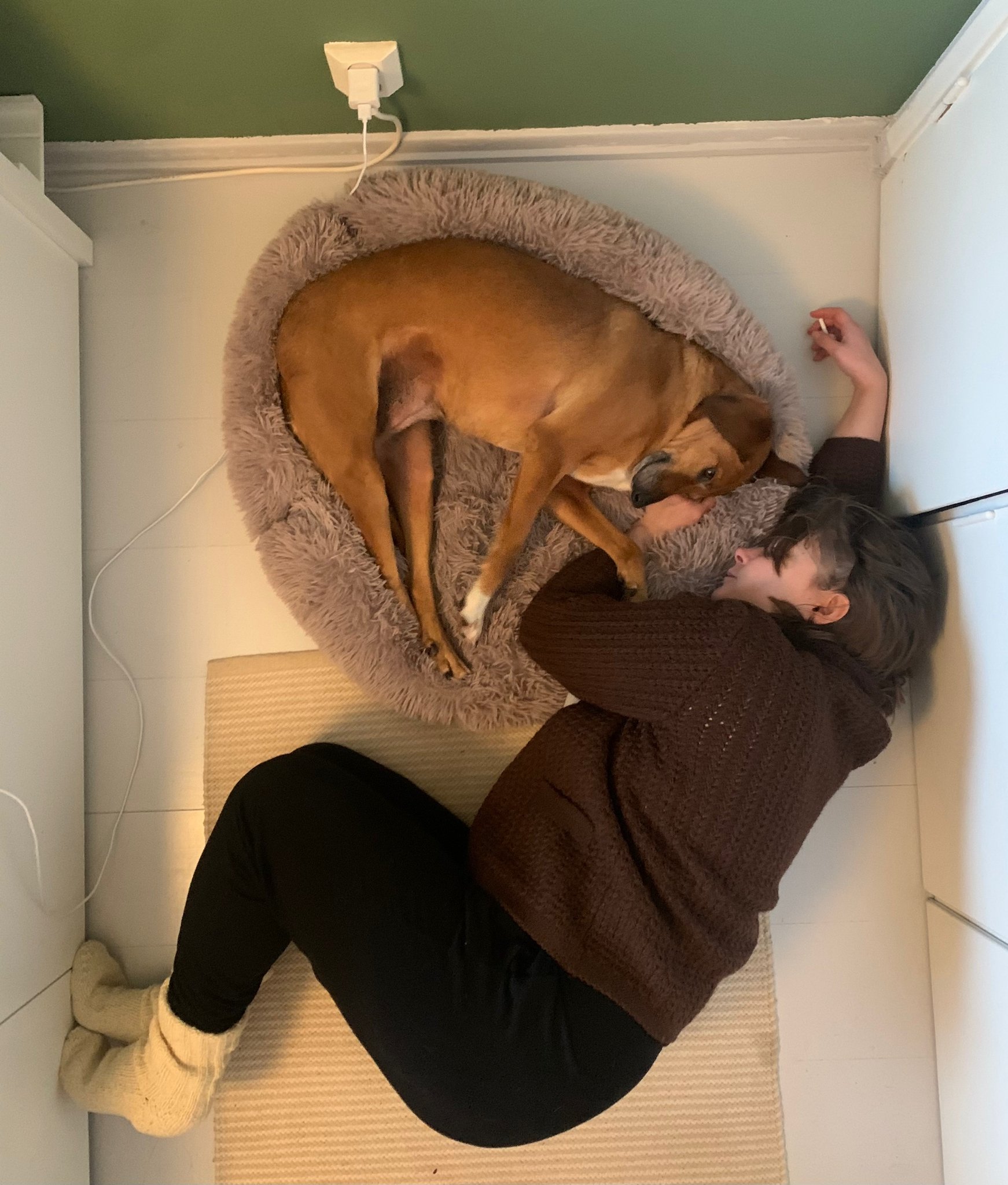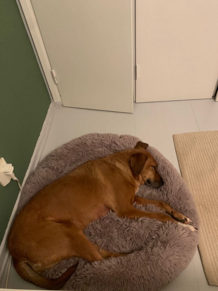 Bella on kehittynyt monella osa-alueella viime keväästä lähtien. Yksi suurimmista haasteista kotihoitoon tullessaan oli yksinolo. Lähtötilanne alkutalvella 2024 oli se, ettei Bellaa voinut jättää montaakaan minuuttia ilman omistajaa ilman, että meni nyyhkyttämään eteiseen tai muuten osoittamaan levottomuutta. Nyt Bella pysytynyt olemaan ilman omistajaa työpäivänpituisiakin aikoja ilman ongelmia, rauhallisesti lepäillen. Toki täydellisestä yksinolosta ei tässä tapauksessa ole kyse, vaan tukena on ollut koiramme Nemo. Yksinoloja on harjoiteltu niin yksinolon pituutta kuin toistoja per päivä pikkuhiljaa lisäämällä. Nykyään onnistuu jo useampikin yksinolojakso päivän aikana. Bella on ollut hoidossa myös kotihoitokodin ulkopuolella ja kaikki vierailut ovat sujuneet hyvin. Olemme alkaneet tehdä myös harjoituksia, jossa Bella jää vaiheittain kokonaan yksin kotiin ja nekin harjoitukset ovat onnistuneet hyvin.
