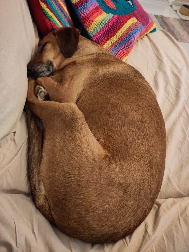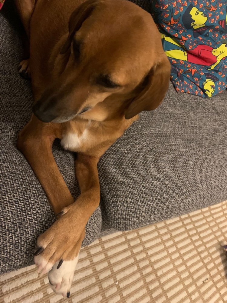 Lepäilyn jälkeen Bella venyttelee melko paljon ja ontuu nivelrikkoista oikeaa kyynärpäätä. Hetken kävelyn jälkeen nivel vetreytyy hieman ja ontuminen vähenee. Ei kuitenkaan poistu kokonaan. Parhaillaan myös toinen kipulääkitysjakso menossa – toivottavasti se auttaa. Lenkit pidetty lyhyenä nivelrikon takia eläinlääkärin ohjeesta, mutta normaalitilanteessa Bella on varmasti todella aktiivinen lenkkeilijä. Bellalla oli kotihoitoon saapuessaan selvästi ylipainoa. Ruokamäärää vähennetty aiemmin annetusta. Painonpudotuksen kanssa tarkoituksenmukaisestikin edetty hitaasti.