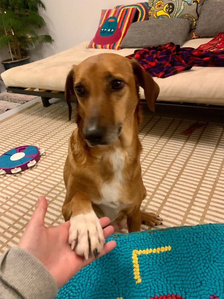 Uusi vuosi meni Bellan kanssa hyvin. Raketit selkeästi häiritsivät häntä, mutta paniikkia ei syntynyt eikä hän kokenut tarvetta piiloutua kotonakaan. Pidimme huolen, että herkuttelijalla oli oikeaan aikaan namit viemässä huomiota muualle.