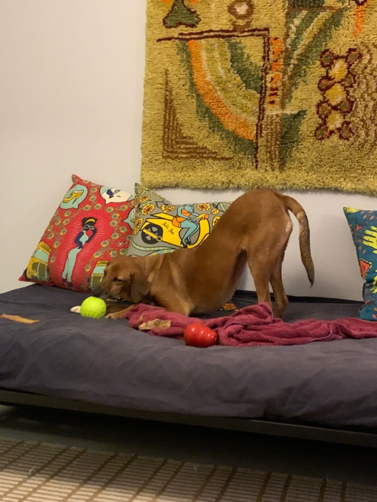Bella on saanut lempinimen “neiti Töppönen”. Töppönen tarjoaa tassuaan jatkuvasti halutessaan lisää rapsutuksia, huomiota tai nameja. Meistä tämä tapa on äärimmäisen suloista. Bellasta on tullut itsenäisempi kotona, eikä hän ole kiinni kotihoitajassa enää jatkuvasti vaikka seuraileekin kotona puuhia mielenkiinnolla. Hellyys, rapsutukset ja silitykset maistuvat edelleen tottakai ja Bella viihtyy sohvaperunana leffaseuralaisena oikein mielellään.