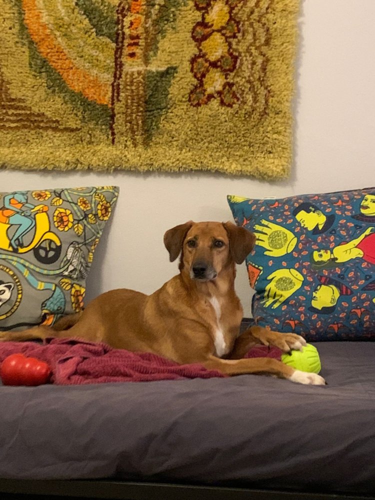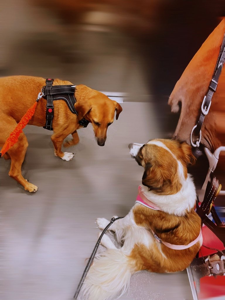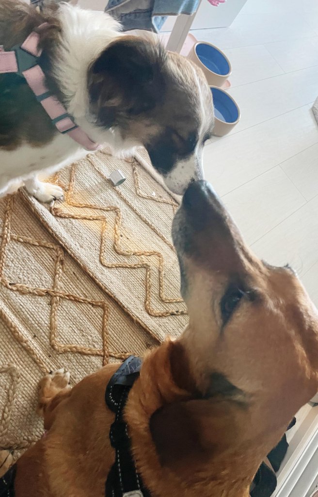 Bella tulee hyvin toimeen meidän toisen koiran Nemon kanssa. Nemo on hyvin samankokoinen ja arviolta saman ikäinenkin. Ensimmäisinä päivinä Bella halusi omaa tilaa, mutta viikon sisällä he jakoivat jo sohvan Nemon kanssa. Sittemmin he ovat myös leikkineet koirapuistossa yhdessä. Nemo on hyvin rauhallinen koira ja uskon, että toisen koiran läsnäololla on ollut huomattava vaikutus Bellan sopeutumiseen / rauhoittumiseen.