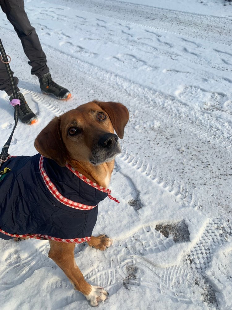 Bellan kotiutuminen on edennyt mallikkaasti. Ulkona hän kulkee intoa uhkuen uusiin paikkoihin. Bella on muutaman kerran jo kierähtänyt piehtaroimaan, mikä mielestämme kertoo rennommasta meiningistä ulkona. Jännitys ja kiinnostus muita koiria kohtaan on pysynyt samana, mutta uudet koirakaverit selkeästi ovat rohkaisseet Bellaa, eikä enää tarvitse tehdä u-käännöstä jos tielle osuu suuri koira. Naapurustossamme asuu muutama muukin Balkanin koira, joiden kanssa ollaan käyty jopa koirapuistossa yhdessä. Bellan ensimmäiset hepulit nähtiinkin uuden vuoden alla kotihoidossa olevan Kojn ja Koko-koiran seurassa. Bellasta on kuoriutunut myös erinomainen retkikaveri – olemme käyneet Sipoon korvessa jo muutamaan otteeseen pitkillä kävelyillä ja Bella selvästi ollut innoissaan uusista metsäpoluista ja lumen keskellä virtaavista puroista. Bella on myös löytänyt vahvemmin oman äänensä, jota hän käyttää erityisesti haistaessaan pupun tai peuran jäljen tai kotona joskus postiluukun kilahtaessa. Kotona hän haukkuu harvakseltaan, ja tuntuu että haukkumiseen yleensä liittyy yllättävä ääni joka tulee kesken lepohetken. Bellasta on tullut itsenäisempi kotona, eikä hän ole kiinni kotihoitajassa enää jatkuvasti vaikka seuraileekin kotona puuhia mielenkiinnolla.