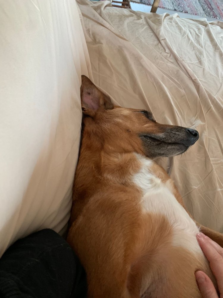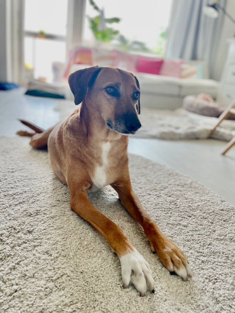 Bella osaa olla nykyään hyvin yksin kotona sekä yksin että toisen koiran kanssa. Kotihoidon alussa yksinolot ainoana koirana olivat haasteellisia, mutta harjoittelun myötä niistä on saatu mukavia. Kouluttaja oli aiemmin tukena yksinolojen harjoittelussa ja ihana huomata kuinka rento ja luottavainen kaveri Bella nykyään on.❤️