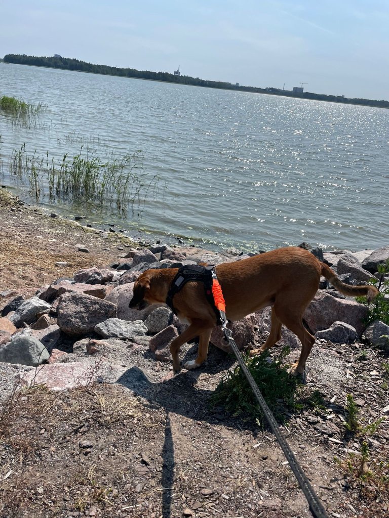 Bellan kanssa käyty myös koirauimarannalla, metsäretkillä ja jonkin verran koirapuistossa. Bellaa pidetty mökillä myös pitkän narun päässä pihalla ja välillä vapaana. Totellut erinomaisesti ja eikä ole koittanut rajojaan vaan pysytellyt nätisti ihmisten kanssa. Toki, kun riistaviettiä on niin ihan peuran, jäniksen tai oravan kulkureiteille ei vapaaksi kannata yksin päästää.