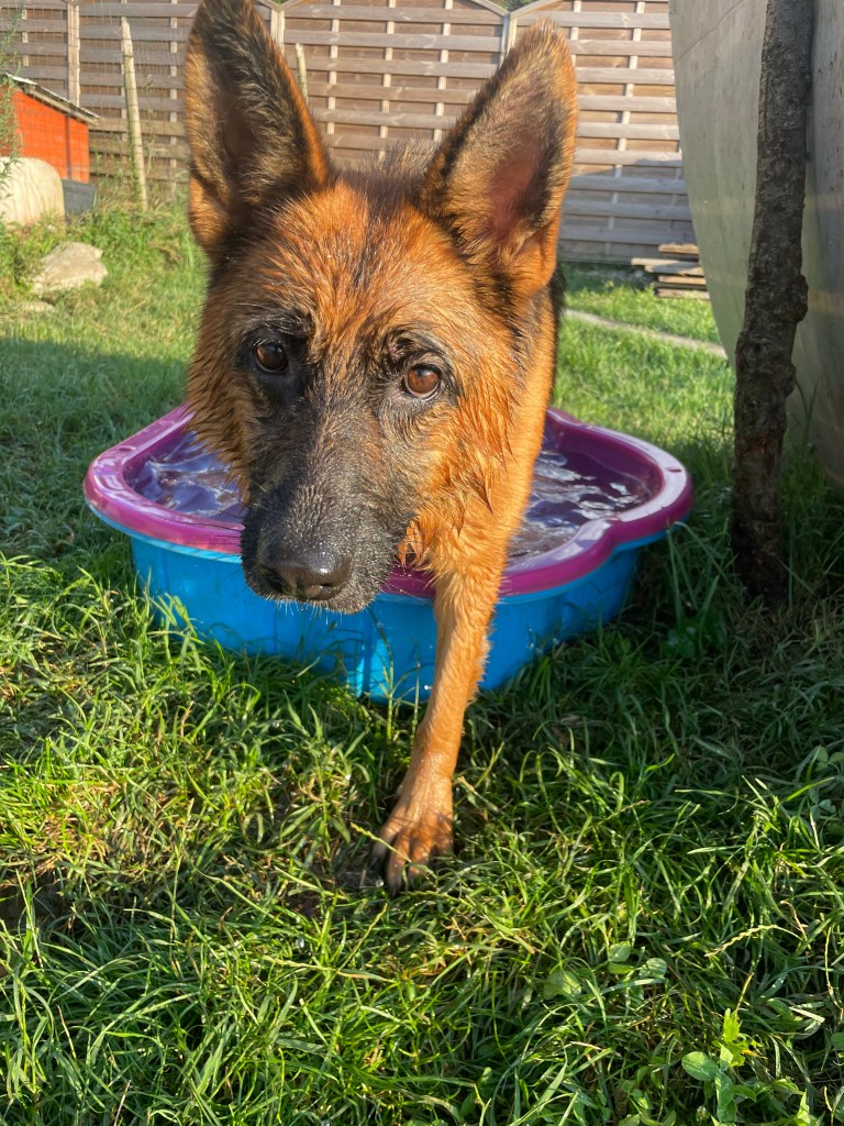 Nada on hyvin kiltti ja kultainen tyttö, joka tarvitsee aikaa luottaa täysin lähestyvään ihmiseen. Se kuitenkin tykkää olla siellä missä tapahtuu ja missä ihmisetkin ovat. Nada antaa käsitellä hyvin, nostaa syliin ja osaa kävellä reippaasti myös hihnassa. Se tulee luokse kutsusta ja ottaa aina mielellään ruoat tai herkut vastaan. Nada innostuu erittäin paljon vedestä sekä vesiletkusta, silloin Nadan äänekäs puoli tulee esiin. Nada tykkää kanneskella ruokakippoja sekä leluja, se ei ihan aina osaa puolustaa ruokaa muilta koirilta, mutta leluista se yrittää pitää kiinni. Surusilmäinen Nada on oikeasti iloinen, hyväntuulinen ja reipas persoona, joka on saanut ajan kanssa enemmän itsevarmuutta ja rohkeutta. Sitä on ihana seurata vähän kauempaa, vapautuneena koirakavereidensa kanssa. Nadalle etsimme aikuiskotia toisen koiran kaverina, joka huomioi Nadan taustaa sekä saksanpaimenkoiran piirteitä. Ei kerrostaloasuntoon.