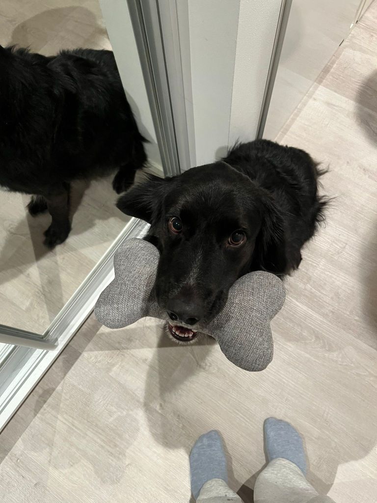 Atso on hyvin leikkisä ja tulee kotihoitopaikan uroskoiran kanssa hienosti juttuun. Leikkiminen kuuluukin päivittäisiin rutiineihin 😊 Yhteiselo toisen koiran kanssa sujuu muutenkin hyvin, eikä esimerkiksi ruoka, lelut tai muut resurssit aiheuta jännitteitä. Atso on oppinut toiselta koiralta paljon tärkeitä kotikoiran taitoja ja tästä syystä Atsolle etsitäänkin kotia ensisijaisesti toisen koiran kaverina ❤️