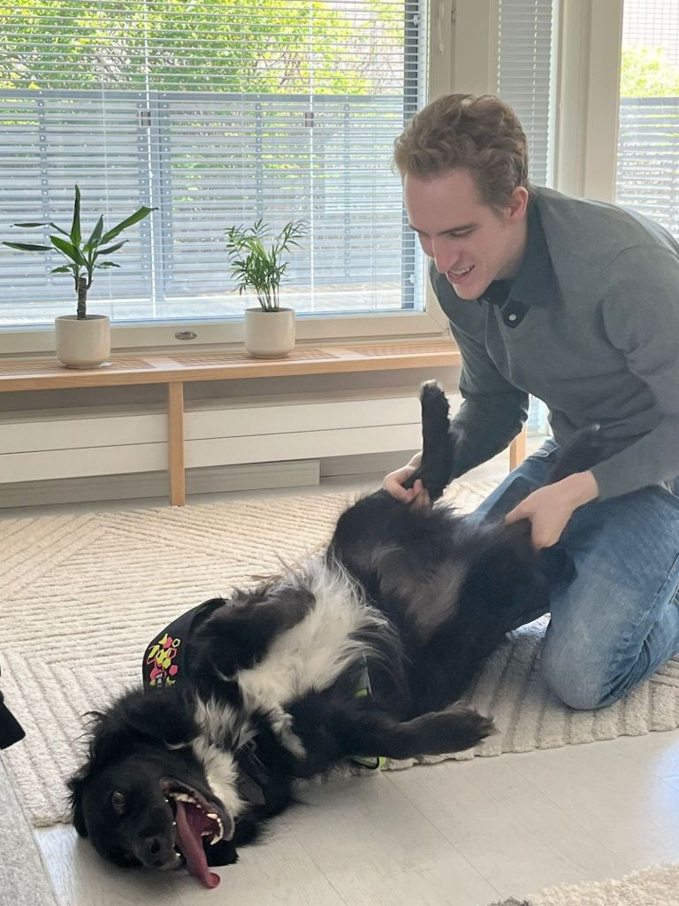 Kotihoitokuulumisia 16.9.24: Atso on viettänyt nyt viikon kotihoidossa omakotitalossa Turun seudulla toisen uroskoiran kaverina. Atso oli alkuun selvästi stressaantunut, joka ilmeni levottomuutena, mutta viikon aikana stressi on lievittynyt ja Atso osaakin jo hienosti rauhoittua lepäilemään.