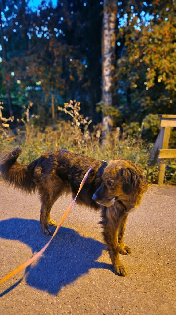 Ensimmäisenä iltana hädät tuli sisälle, sen jälkeen Zaki onkin ollut sisäsiisti. Hihnassa kävely sujuu yllättävän hienosti, toki aika näyttää mitä tapahtuu, kun rohkeutta ja uteliaisuutta tulee lisää ulkona. Ulkona vastaantulevat ihmiset eivät juuri enää saa huomiota, pyörät ja autot ovat myös ok. Vieraat koirat tuntuu hihnassa hankalilta kohdattavilta ja ne kierretäänkin toistaiseksi kaukaa tai vaihdetaan suuntaa. Reaktiona yleensä näissä tilanteissa jähmettyminen tai suunnan kääntäminen.