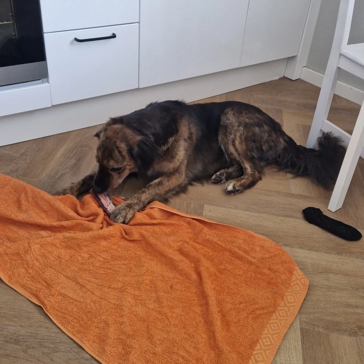 Zakilla on nyt 4 viikkoa kotihoidossa takana. Näiden muutaman viikon aikana pahin stressi on selvästi laskenut ja iloinen poika on kuoriutunut aiemmin stressaantuneesta kaverista. Zaki on löytänyt hienosti paikkansa laumasta ja arki alkaa sujumaan oikein kivasti. Zaki ulkoilee nyt jo aika reippaasti, tykkää piehtaroida pelloilla ja nurmikentillä sekä välillä vähän muuallakin. Energiataso on Zakilla noussut huomattavasti ja hän on alkanut leikkimään leluilla iltaisin sisällä. Usein kaverilla on niin hauskaa, että spurttailee myös sisällä leluja ilmaan heitellen. Keittiön pöydältä välillä edelleen varastellaan asioita mutta vähenevissä määrin.