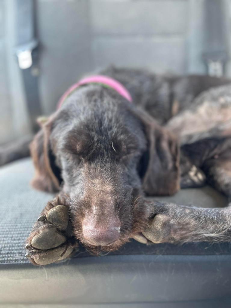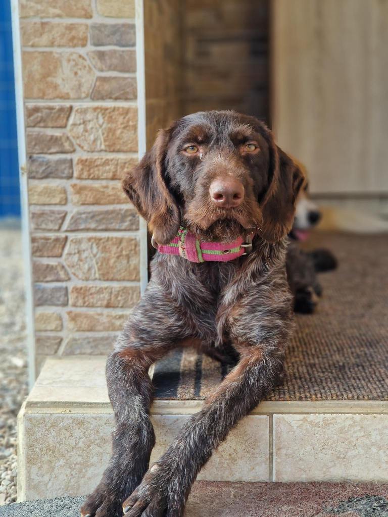 Sade on keskikokoinen 3-vuotias kaarkeakarvainen saksanseisoja, joka muutti yhdistyksemme turvakodille toukokuun alussa (2024), omistajan menehdyttyä. Sade oli hyvin laiha ja turkki sekä iho heikossa kunnossa. Saden kuntoutuminen oli myös mahdollinen kummituen avulla. Sade sai tarvittavat lääkehoidot sekä lisäravinteita. Alle kuukaudessa Sade näytti paljon paremmalta ja hyvinvoivalta. Turvakodilla Sadea jännitti isompi koiralauma ja seurasi ihmistä joka paikkaan. Viikossa hän alkoi kuitenkin reipastumaan, tottumaan uuteen ympäristöön ja tutustumaan toisiin koiriin. Muutamasta koirasta Sade onkin saanut hyviä leikkikavereita, mm. vähän isokokoisempi Lav poika sekä pienikokoiset Tiida ja Malina. Sade on luottavainen, ihmisläheinen ja reipas iloinen koira. Sade on saanut itsevarmuutta ja rohkeutta, hän liikkuu vapaasti etupihalla eikä näytä jännittävän ketään. Sade on aktiivinen ja energinen tyttö, joka innostuessa hyppii paljon, ihmistä vasten, välillä hammastellen leikkimielellä. Touhuskeleva Sade tulee sopuisasti koirien kanssa toimeen, eniten nuorten kanssa. Lelut ja kepit kiinnostaa, ja tennispallojen nouto on kivaa. Sade pelkää erittäin paljon ukkosta, silloin hän pyrkii sisälle joko ovesta tai ikkunasta. Sisällä Sade on pystynyt rauhoittumaan vähän ajan kuluttua. Kissoista Sade on kiinnostunut. Autoilu ja hihnassa kävely on sujunut hyvin. Sade sopisi hyvin omakotitaloon tai rivitaloon, aktiiviseen liikunnalliseen kotiin, joko ainoana koirana tai toisen koiran kaverina.