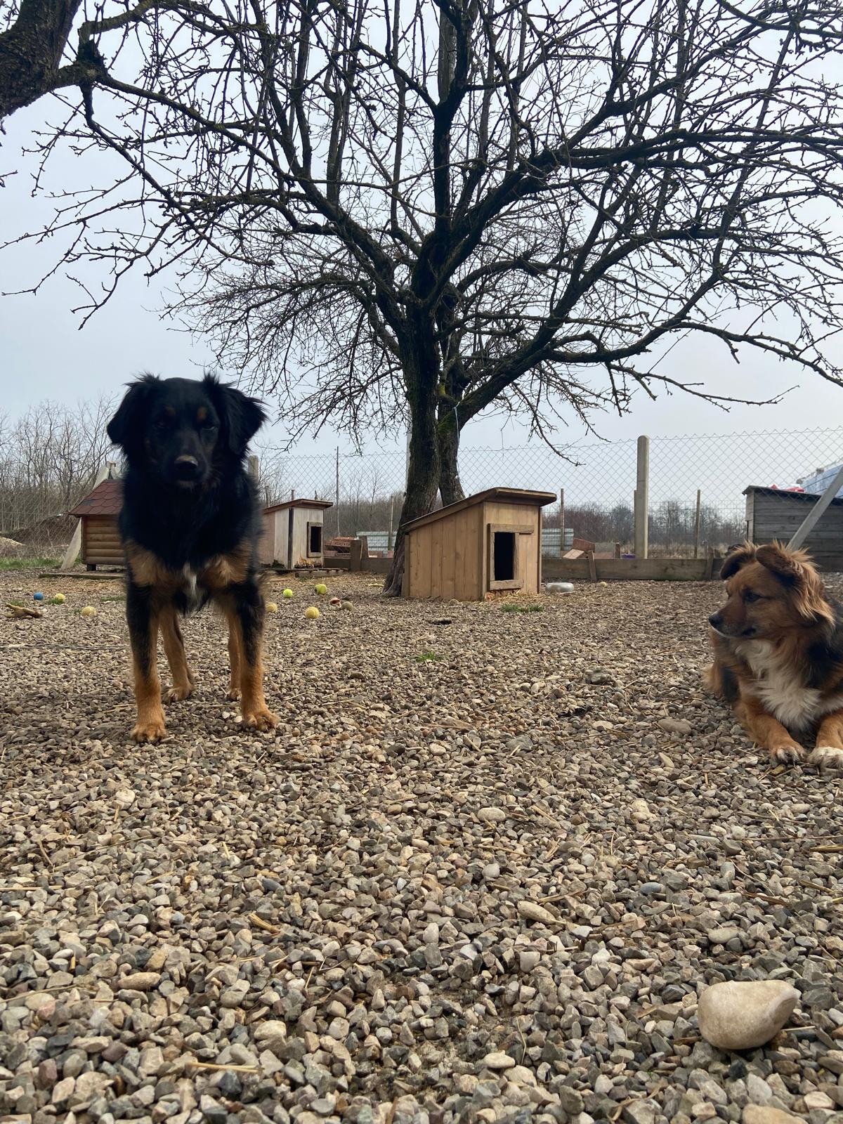 Shanti saapui turvakodille Dopojn tarhalta syksyllä -22. Shanti ja pennut Bono, Yara ja Darffi asuivat kunnallisella tarhalla boksissa, jossa oli muitakin koiria ja Shanti pentuineen oli jäädä ilman ruokaa. Shantin pennut olivat aivan pieniä perheen muuttaessa yhdistyksen turvakodille.