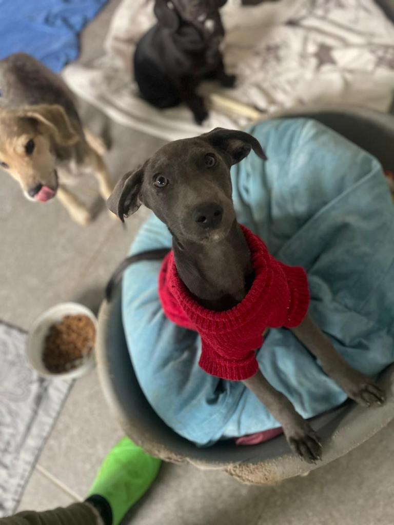 Kaunis ja persoonallinen Ilta tyttö saapui turvakodille syyskuun lopussa 2024. Ilta oli hento ja pieni, ainoa selviytyjä pentueesta joka oli tuotu aikaisemmin Dobojn kunnalliselle tarhalle ilman emoa. Ilta vietti ensimmäiset kaksi kuukautta karanteenitiloissa muiden pentujen kanssa, ja on erityisesti ystävystynyt häntä pienemmän Rusina pennun kanssa ❤ Yhdessä he syövät, leikkivät ja nukkuvat. Ilta on ollut alusta lähtien ihmisrakas ja sylihauva. Sylissä Ilta viihtyy, kun tietää saavansa hellyyttä ja rapsutuksia. Jo pienenä pirpanana Ilta osasi kiivetä jalkojen kautta syliin asti. Luottavainen ja sosiaalinen luonne. Ilta on hyväntuulinen, reipas ja iloinen nuori koira, joka on tullut myös hyvin toimeen muiden pentujen sekä nykyään myös aikuiskoirien kanssa. Ilta pääsee ulos isommalle aidatulle alueelle, ja onkin päässyt tutustumaan uusiin koiriin. Alussa Iltaa hieman jänskätti, sitten hän yritti mielistellä isompia koiria ja nykyään hän on päässyt mukaan heidän leikkeihin. Ilta saa pieniä hepuleita ja rakastaa juosta. Ilta on sileäturkkinen hopean värinen kaunotar, joka on tottunut pitämään neuleita. Pakkasissa saattaakin palella ilman takkia tai neuletta, usein hän kuitenkin menee karanteenirakennuksen sisätiloihin kun alkaa olemaan hänen mielestä liian kylmä.