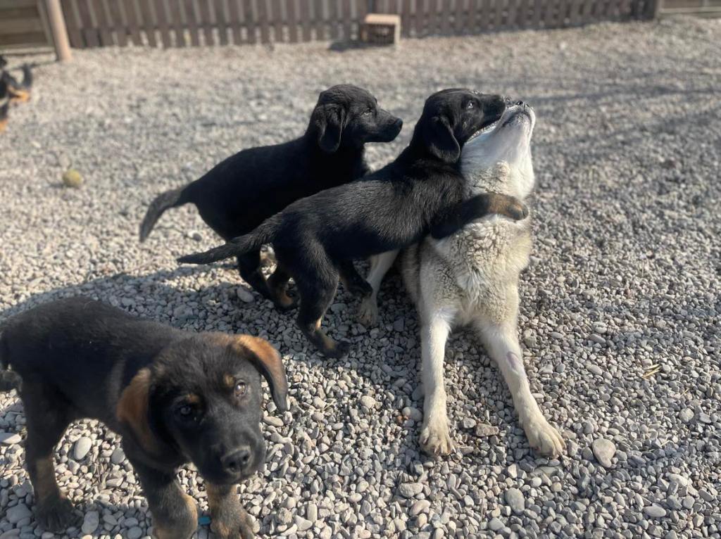 Stelaan ja pentuhin tutustuimme tammikuussa, ja koiraperhe muutti yhdistyksemme turvakodille ensimmäisten rokotusten jälkeen.