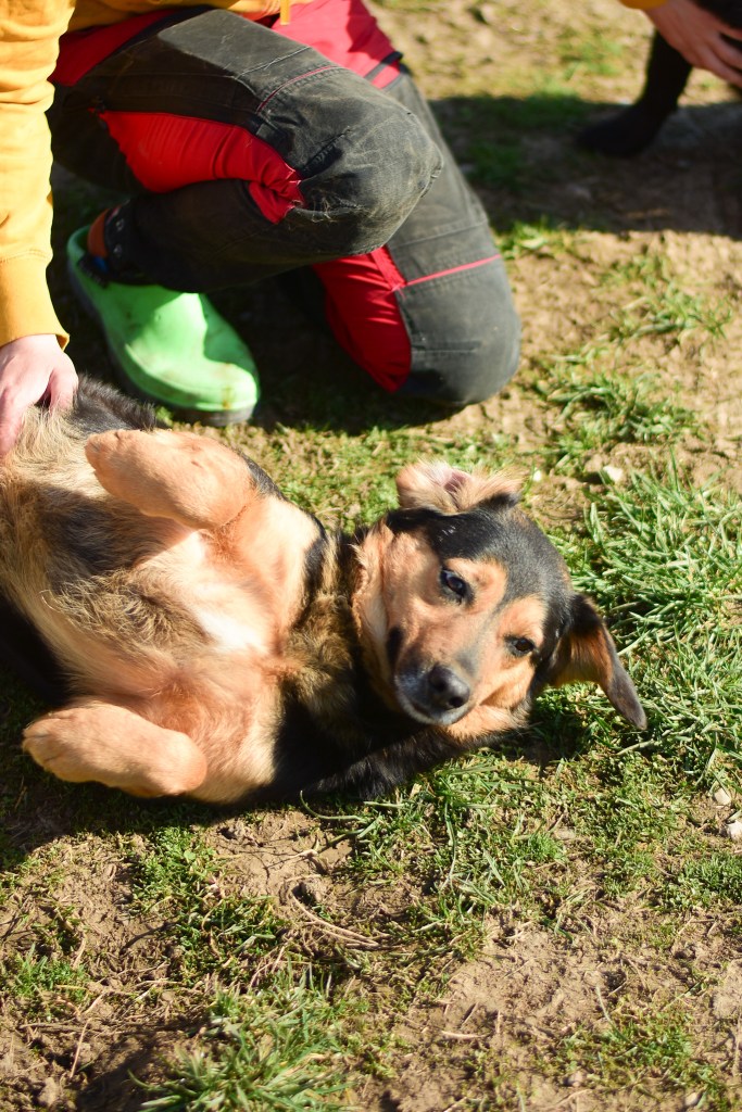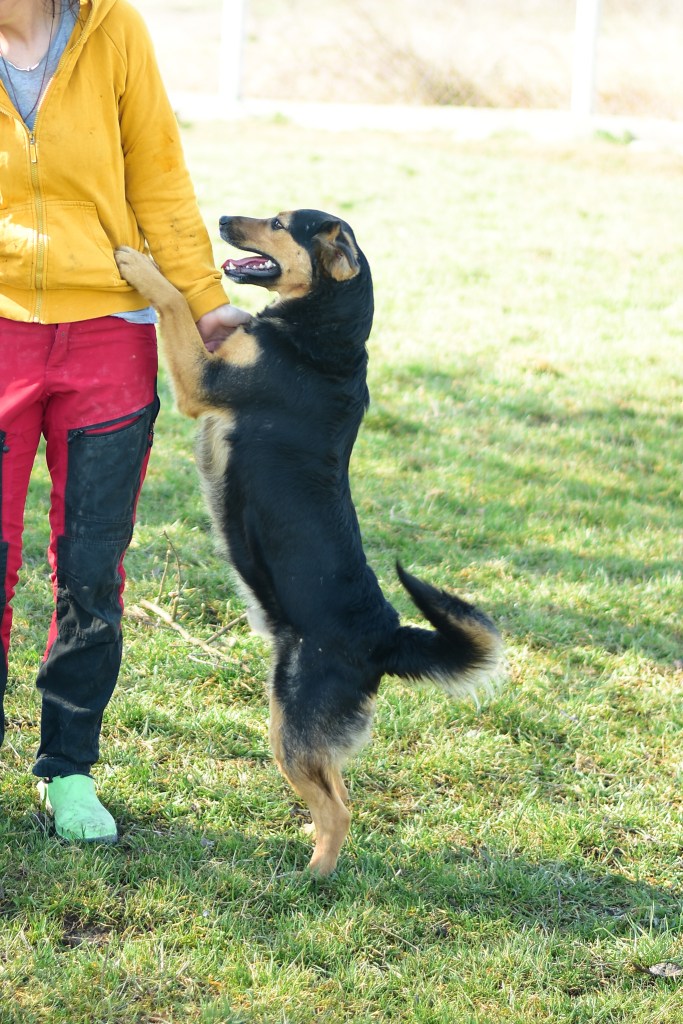 Dumle oli saapuessaan turvakodille kovin laiha ja kipeän oloinen, mutta on jo muutamassa kuukaudessa toipunut fyysisesti ja henkisesti – Dumle on kovin reipas ja ihmisrakas poika! Dumle juoksentelee niityllä koirakaverien kanssa leikkien, muutamia isoja laumanvartijoita on vähän jännittänyt ja väistänyt. Hän on kuitenkin aika itsevarma, ja tulee kaikkien kanssa toimeen.