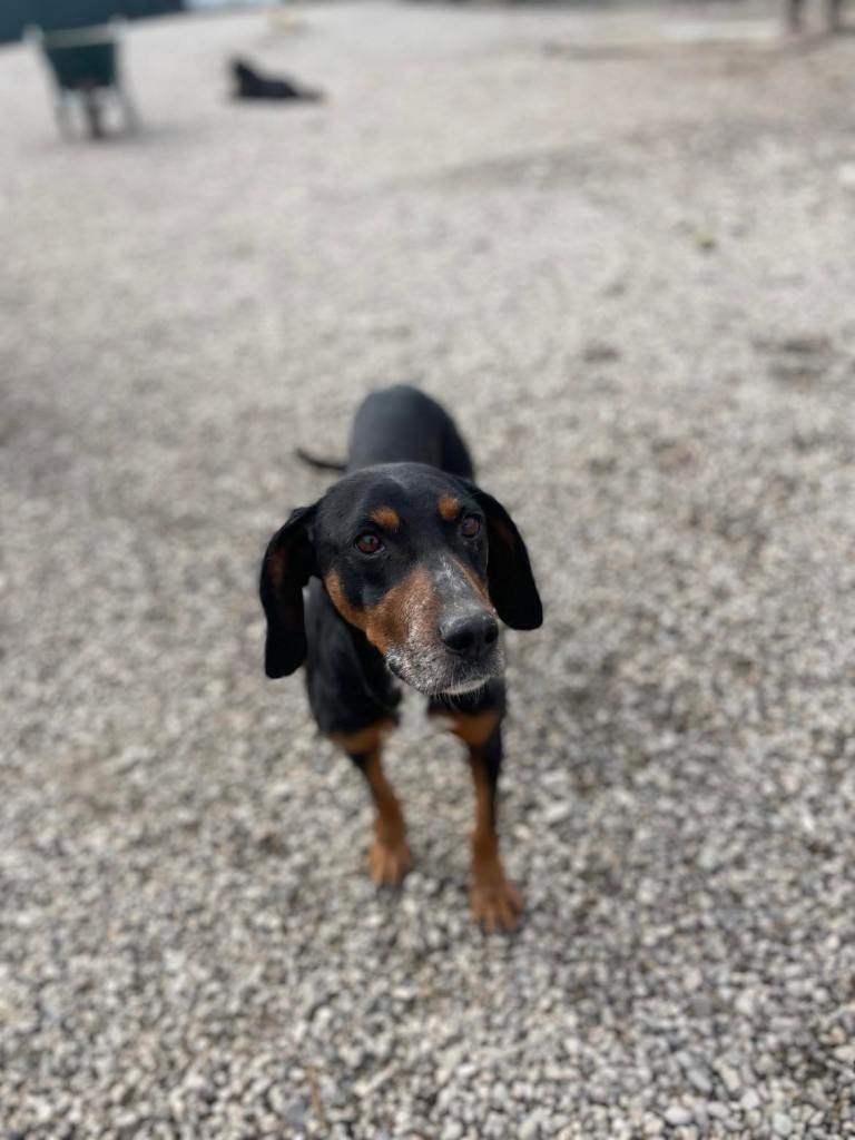 Vuoden 2025 helmikuussa Dobojn tarhalta muutti turvakodille kovin laihaksi riutunut koira varustettuna hienoilla luppakorvilla. Tällä aivan liian hoikalla tytöllä, nimeltään Alli, oli niin kauhea nälkä, että se meni aivan tolaltaan ruoka-aikoina ja tungeksi toisten koirien kupeille. Omaa ruokaansa luppakorva puolustivarsin kipakasti ja hotki kipponsa tyhjäksi kuin henkensä hädässä. Runsaan viikon jälkeen Alli oli onneksi oivaltanut, että ruokaa on tosiaan tarjolla kaikille, kaikkina viikonpäivinä. Vaikka Allin käytös ruokailutilanteissa on rauhoittunut, se on edelleen tarkka omasta ruuastaan. Dobojn tarhalla Alli ehti viettää ainakin noin puoli vuotta, sitä aiemmista vaiheista ei ole tietoa. Todennäköisesti Allilla on kuitenkin ollut jossain vaiheessa koti, koska hihnakävely ja autoilu ovat sille tuttuja juttuja. Eläinlääkärikäyntikin sujui ongelmitta.