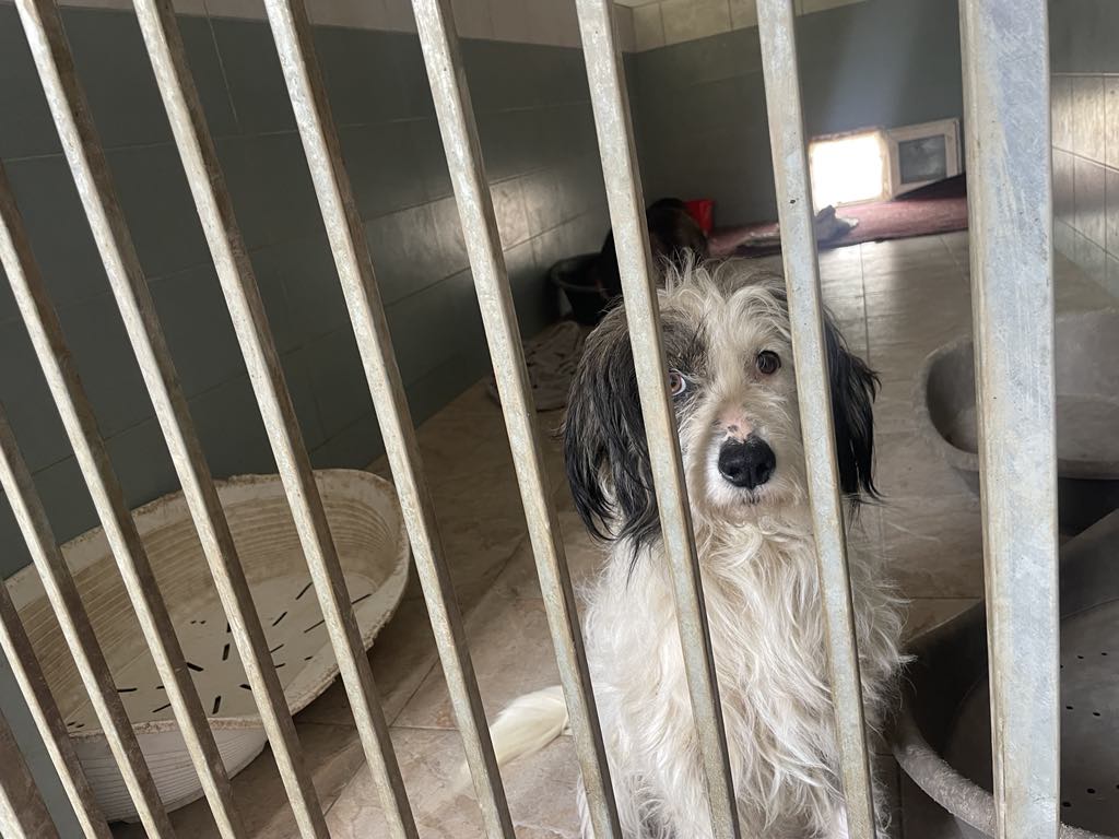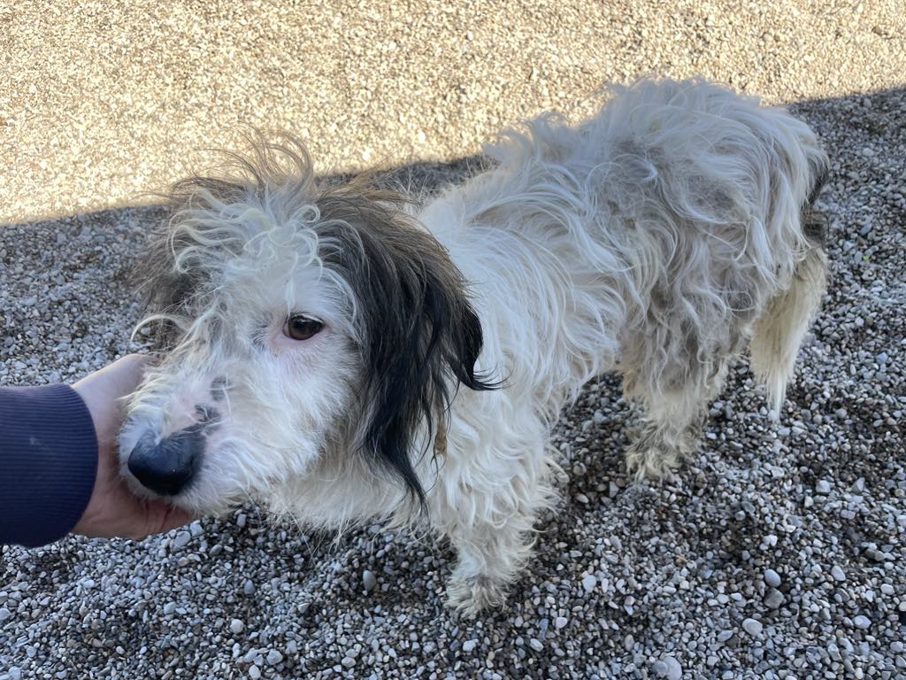 Valkoinen, mustilla korvilla varustettu pieni karvaturri siirtyi Dobjn kunnalliselta tarhalta turvakodille