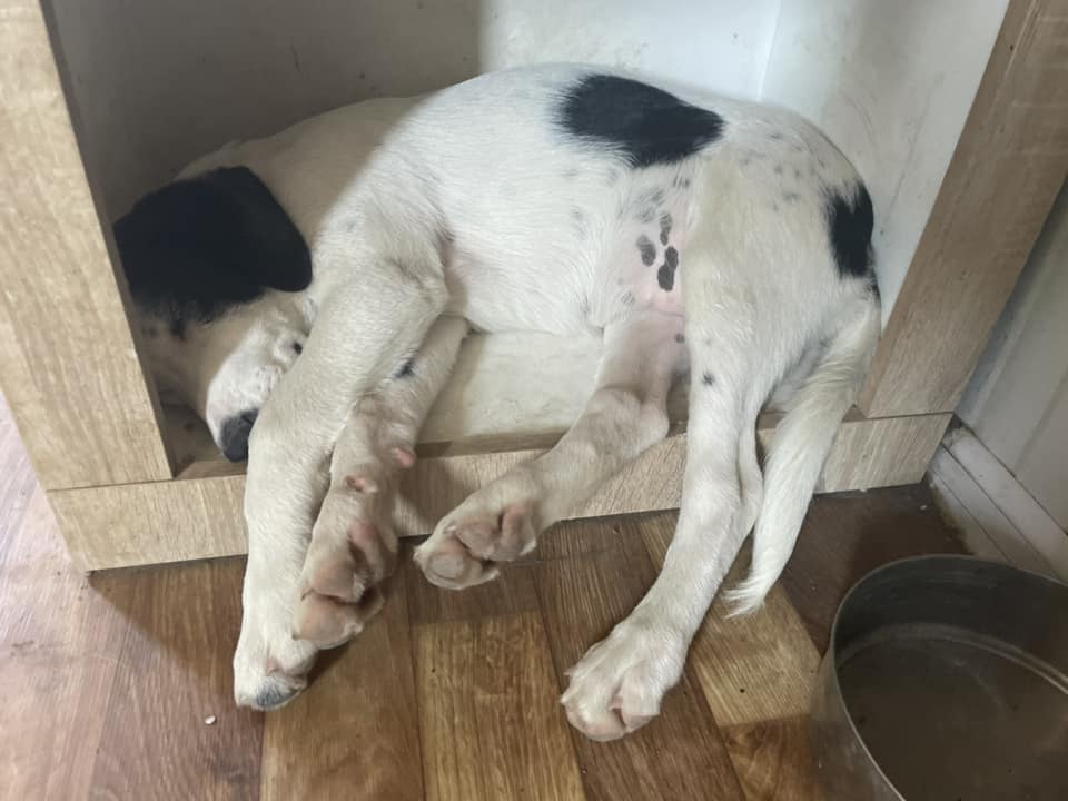 Uni saapui turvakodille pienenä pentuna 4 sisaruksen kanssa. Kaikki muut ovat mustia ja vähän pörröisiä, Uni erottuu hieman joukosta