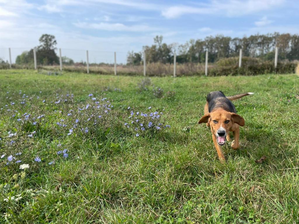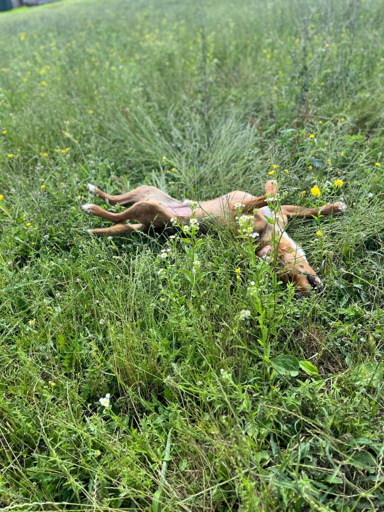 Kun aktiivimme kävivät turvakodilla kesällä -24 ja viettivät Rufin kanssa aikaa aidatulla niityllä, Rufi leikki kavereidensa kanssa ja kaivoi kuoppia, mutta aina välillä juoksi ihmisten luokse hakemaan rapsutuksia ja huomiota (videoita tästä tekstin alla). Seuraavana päivänä, kun Rufi oli taas vapaana niityllä ja näki aktiivien saapuvan, hän juoksi jo kaukaa vastaan häntä heiluen hakemaan rapsuja. Kunpa hän jo saisi sen oman ihmisen, kenen kanssa tehdä tätä joka päivä ❤ Rufista saisi varmasti ihanan ja rakastavan ystävän metsälenkeille ja yhteiseen puuhailuun. Rufin sisarukset ovatkin jo päässeet onnellisesti omiin koteihinsa.