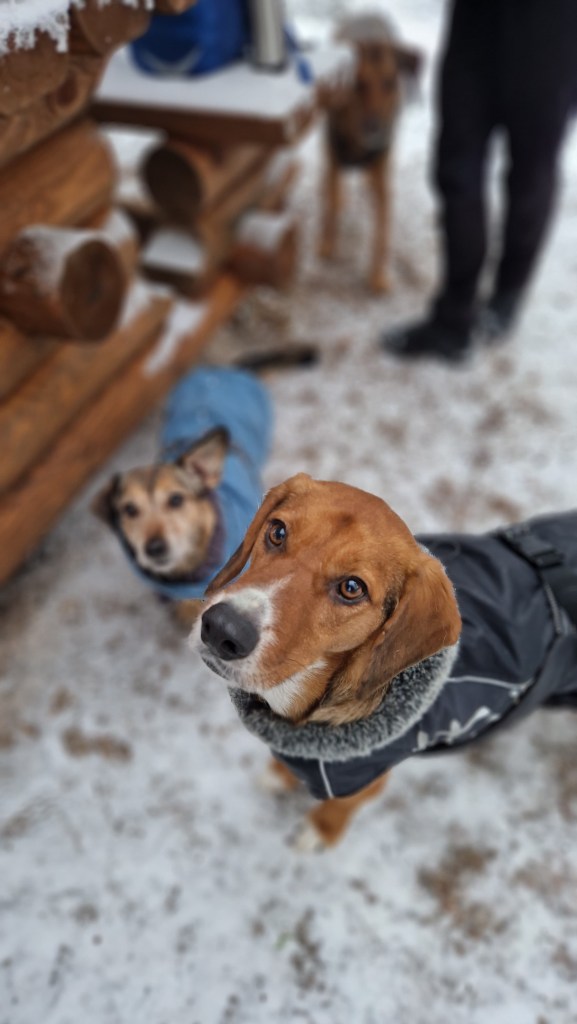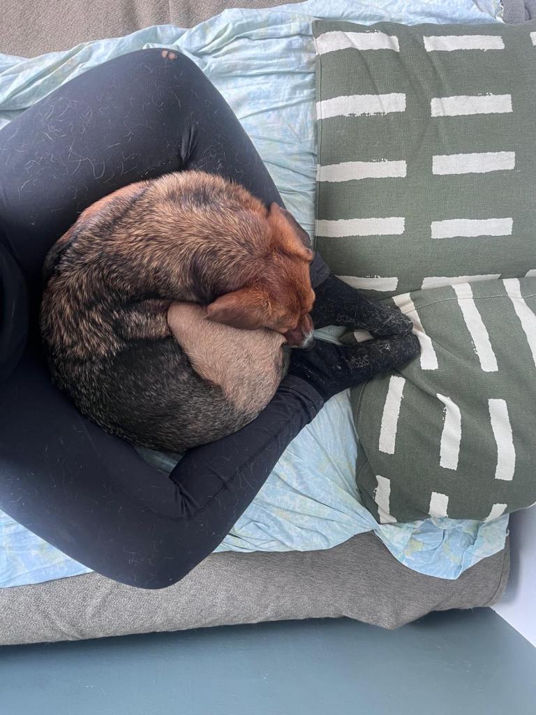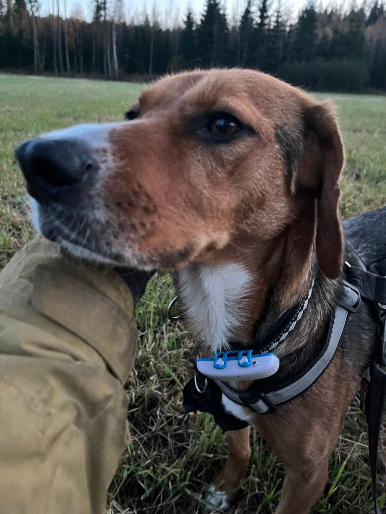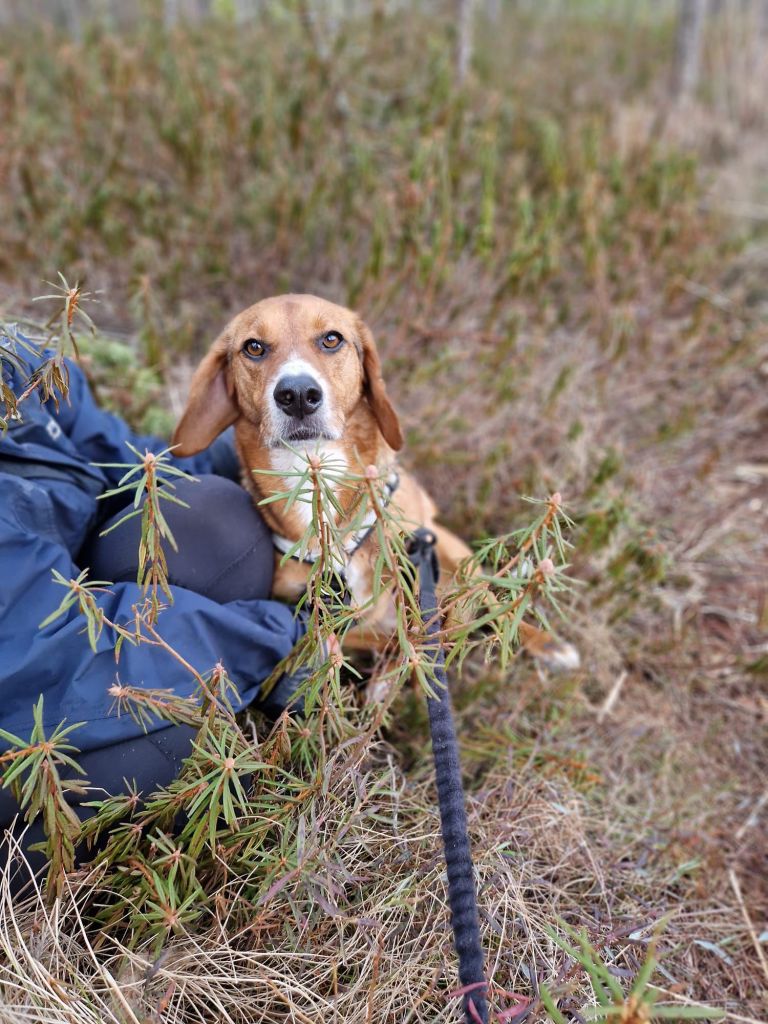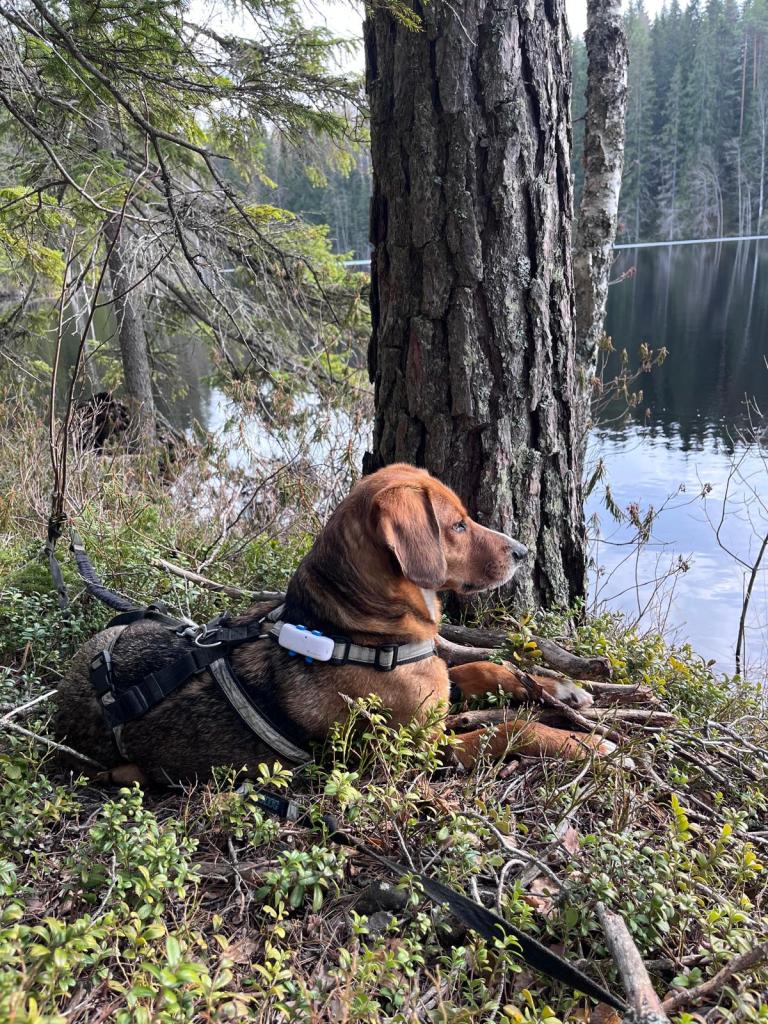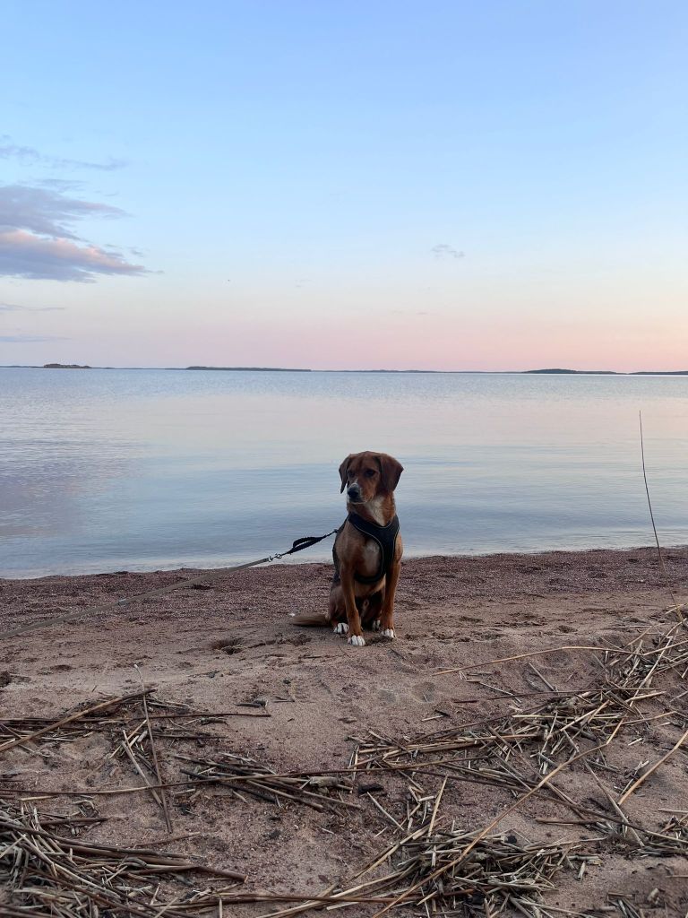 Olin todella onnellinen, kun viiden pitkän tarhalla vietetyn vuoden jälkeen, Rufi saapui Suomeen meille kotihoitoon 10.10.2024. Ennen asettumista helsinkiläiseen lähiöön, vietimme ensimmäiset viikot mökin rauhassa. Koska Rufi oli ollut turvakodilla kovin arka, olimme varautuneet, että Rufi viettäisi alkuun aikaa omaan rauhaan vetäytyneenä. Mitä vielä! Rufi tuli heti rapsuteltavaksi ja oli sitä mieltä, että nukkuminen omassa rauhassa on yliarvostettua ja pyrki heti muun lauman luokse. Ensimmäisen yön jälkeen Rufi onkin nukkunut kaikki yöt kosketusetäisyydellä, yleensä perhen miehen jalkoihin painautuneena ja välillä kainalossa.