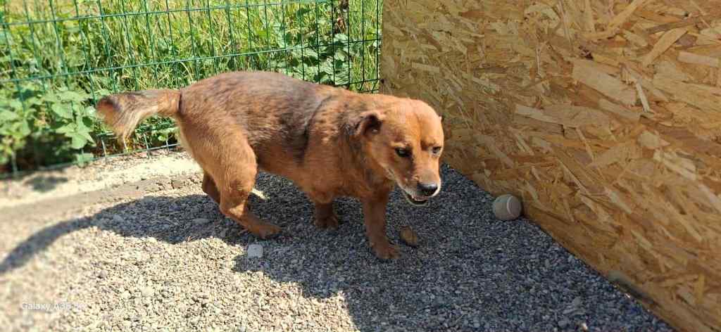 Punaturkkinen Saimi on pieni keskikokoinen ja rotevarakenteinen tyttö, joka painaa noin 16 kiloa. Saimi muutti yhdistyksemme turvakodille huhtikuussa 2025 kunnallisen tarhan melusta ja tungoksesta. Saimi ehti viettää kunnallisen tarhan ahtaassa boksissa reilu puoli vuotta. Saimi ei vaatinut huomiota, hän katseli meitä hiljaisena koirankopistaan, surusilmillään. Vaikka ensivaikutelma pyöreästä olemuksesta niin vihjasikin, Saimi ei ollut tiineenä. Sen sijaan hieman ylimääräistä vararengasta oli päässyt kertymään.
