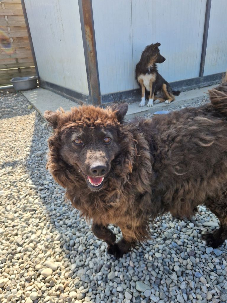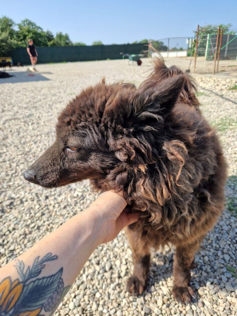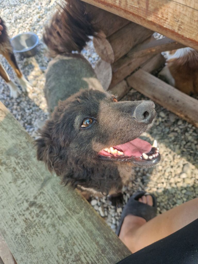 Shirley on hurmaava hienohelma, joka rakastaa olla huomion keskipisteenä, juuri siellä missä ihmiset ovat. Tämä tumma kiharakuningatar ei epäröi näyttää, että huomio kuuluu hänelle. Jos joku toinen yrittää tulla jakamaan rapsutukset, Shirley murisee vienosti, mutta lempeänä tyttönä rauhoittuu heti, kun varmistuu, ettei hänen hellittely ole loppumassa. Sitten taas jatkuu hännän heilutus ja nautiskelu. Shirleyn elämä on täydellistä, kun hän saa olla huomion keskipisteenä. Shirley on sosiaalinen, leikkisä ja läheisyyttä janoava persoona, joka kiipeää mieluusti syliin kiehnäämään kun kuulee oman nimensä. Hän on mestari hakemaan kontaktia ja saa ihmiset hymyilemään pelkällä katseellaan. Turvakodin olosuhteet ovat jättäneet jälkensä Shirleyn upeaan tummaan kiharaturkkiin, mutta onneksi aktiivien huolenpidolla ja huolellisella trimmauksella hänestä on kuoriutunut todellinen lady. Juuri sellainen hienostunut neiti, joka hänen arvolleen kuuluu.