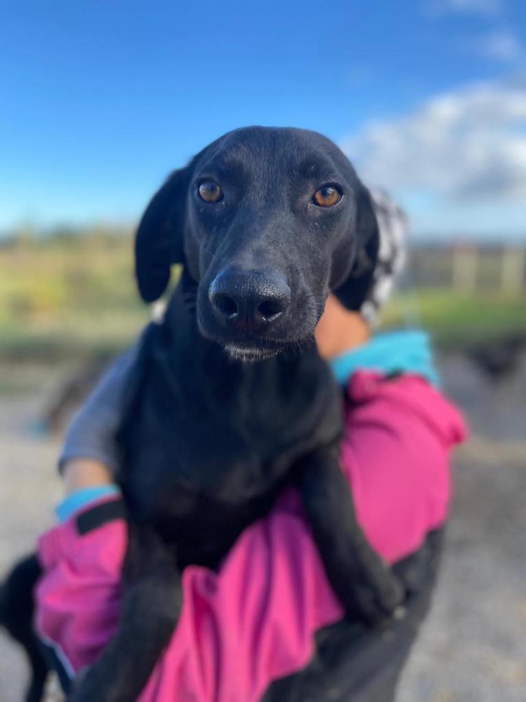 Kaunis musta pitkäkoipinen ja lyhyturkkinen Taika on energinen ja leikkisä tyttö, joka jakaa aitauksen kuuden muun koiran kanssa. Kaksi kertaa päivässä Taikan aitauksen ovi avataan, ja koirat pääsevät liikkumaan toisessakin aitauksessa isommassa tilassa, jossa on muita koiria. Taika tykkää juosta, leikkiä ja hyppiä ihmistä vasten innokkaasti. Se mielistelee vanhempia ja vahvempia koiria. Ihmiselle Taika on kiltti ja innostuu helposti huomiosta. Taikalla on myös herkkä puoli, ja jännittävissä tilanteissa se yleensä alistuu tai jähmettyy, esim. käsiteltäessä.