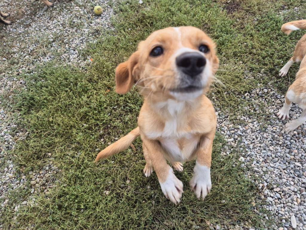 Suloinen Karkki on ehtinyt asua veljensä kanssa turvakodilla vasta noin kuukauden, mutta jo näin lyhyessä ajassa pieni tyttö on voittanut arkuutensa ja löytänyt paikkansa isossa koiralaumassa. Toki ensi alkuun turvakoti outona ympäristönä ihmisineen ja koirineen jännitti kovasti eikä Karkki uskaltautunut sisätiloista ulos kuin hetkeksi. Veli oli selvästi rohkeampi, mutta Karkki rohkaistui nopeasti hakemalla ihmisestä tukea. Nykyisin Karkin mielestä kaikkialla turvakodin tiloissa, niin sisällä kuin ulkona, on kivaa ja aina