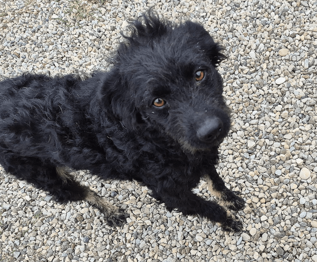 Kiharaturkkinen Mymmeli on kooltaan pienehkö, liikuttava nuori koira ja Pikku-myyn huolehtivainen emo. Hoikkarakenteinen, aluksi hieman ujo Mymmeli saapui alkukesällä turvakodille Dobojn tarhalta ja synnytti pian sen jälkeen. Turvakodin pitäjät tuntevat Mymmelin jo pitemmältä ajalta ja muistavat sen pelänneen tarhan työntekijöitä. Turvakodillakin Mymmeli suhtautui aluksi arastellen ihmisiin, mutta on jo ehtinyt rohkaistua ja löytänyt paikkansa koiralaumassa.
