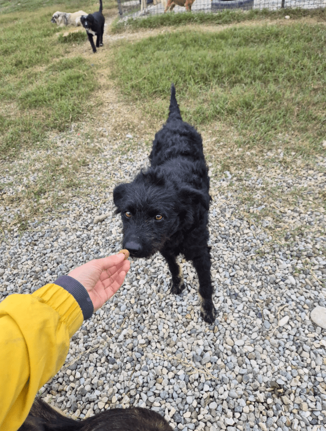 Luonteeltaan kiltti tyttö antaa käsitellä itseään ja istuu kauniisti sylissä, vaikka vähän jännittääkin. Sen sijaan koiralaumassa suloinen karvaturri on melko itsevarma, hyvin leikkisä ja eturivissä hyppimässä aina silloin, kun herkkuja on jaossa.