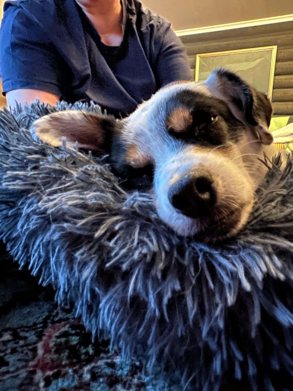 hyvin luontevasti oman paikkansa hoitopaikan toisten koirien, reippaan mummokoiran ja kahden