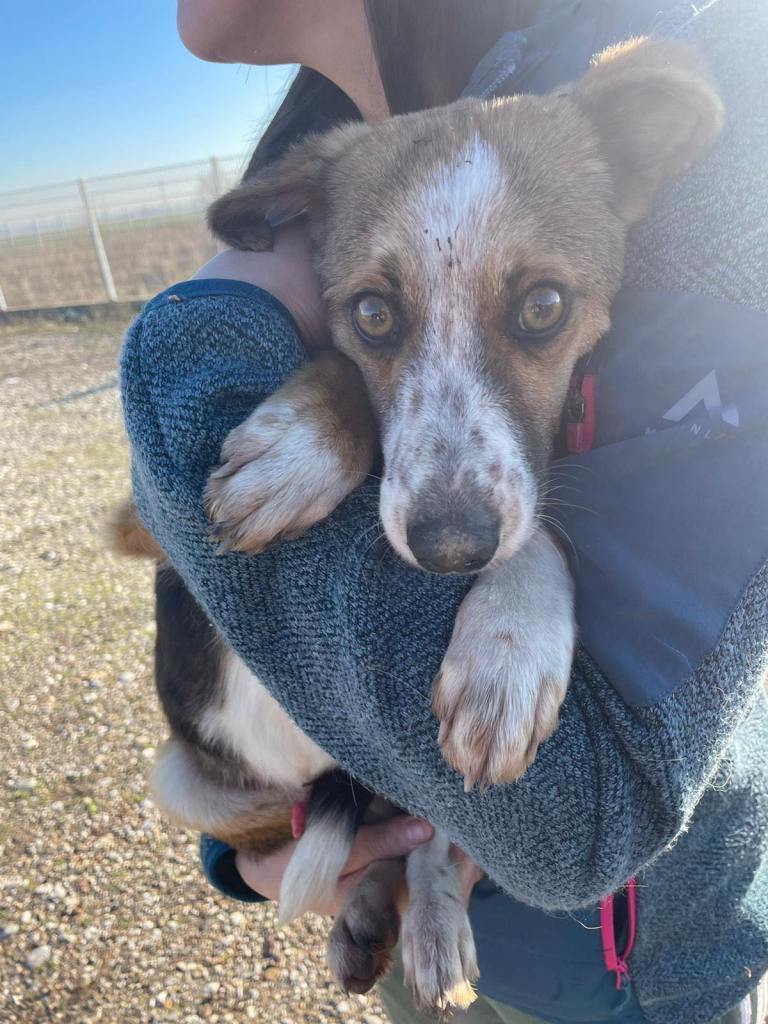 Timtim löytyi pienenä pentuna joulukuun 2023 puolivälissä vilkkaan kadun varrella olevalta pellolta. Aktiivien käydessä ruokkimassa pentua pellolla, lähti hän ensin karkuun, mutta tuli kuitenkin aina syömään. Ei kuitenkaan antanut ottaa kiinni. Jossain vaiheessa pentua ei muutamaan kertaan näkynyt, mutta aktiivit jatkoivat ruuan viemistä paikalle. Timtim oli onnekas, sillä yhdellä ruokkimiskerralla aktiivit löysivät hänet liikkumattomana ja heikossa kunnossa pellolta. He epäilivät pennun jääneen auton alle. Tällä kertoo heikkovointinen Timtim saatiin kiinni ja vietiin eläinlääkäriin. Koiralla oli murtuma jalassa ja lonkassa.