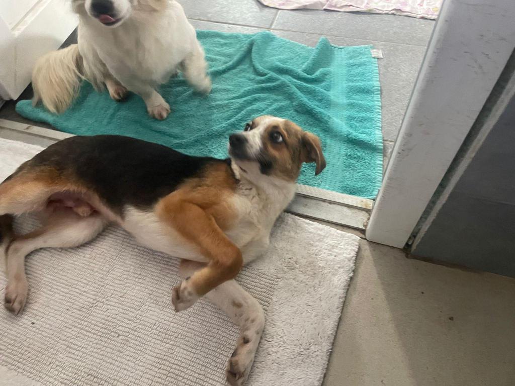TimTim muutti turvakodille ja alkoi voimistua. Hän on kovin koirasosiaalinen ja leikkii koirakavereiden kanssa mielellään. Ihmisiä kohtaan Timtim on rohkaistunut huomattavasti turvakodilla olon aikana ja tulee nykyään hakemaan rapsutuksia, jos muut koirat eivät häärää ympärillä aiheuttamassa mellakkaa. Turvakodilla luottamusta on kertynyt ja hän antaa jo ottaa kiinni, mutta ihmisen täytyy olla hellä ja antaa aikaa.