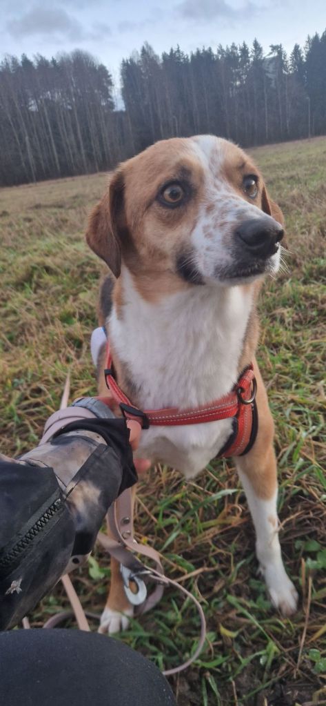Timtim olisi varmasti onnellinen kodissa, jossa se pääsisi ulkoilemaan paljon luonnossa. Timtim tulee hyvin toimeen muiden koirien kanssa ja kaksi lasta (8 ja 10v) se on myös tavannut ja tapaaminen meni hienosti. Uudet aikuiset ihmiset Timtim ottaa myös hyvin luottavaisesti vastaan. Isokokoiselle miehelle saattaa ensin päästä haukahdus, kunnes Timtim voi todeta tyypin kivaksi ja sen jälkeen Timtim löytyykin hakemassa silityksiä. Timtim on aivan todella hellyyttävä poika, jonka luonne on kultaa. Timtim tottuu todennäköisesti monenlaiseenkin kotiin. Koirasosiaalisena tyyppinä koirallinen koti voisi olla paras ratkaisu tälle pojalle. Timtimistä saisi kaverin niin lenkeille, harrastuksiin kuin sohvalle kainalokaveriksi. Timtim on sovitusti tavattavissa Helsingissä! Mikäli Timtim voisi olla perheeseesi se puuttuva palanen, laitathan ensin adoptiohakemuksen. Adoptiohakemus ei sido vielä adoptioon.