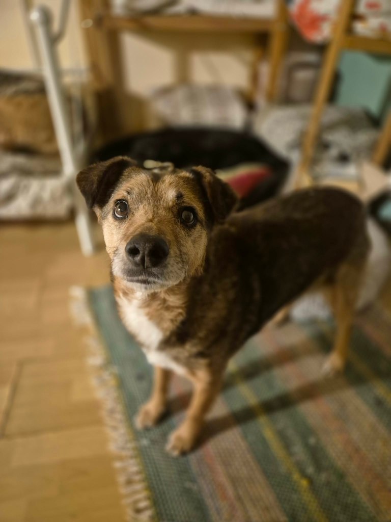 Newton on sympaattinen, vähän ujohko herrasmies, jonka tie ei ole ollut helpoimmasta päästä. Hän vietti peräti viisi vuotta kunnallisella tarhalla 300 koiran joukossa Becejssä, kunnes pääsi marraskuussa 2025 yhdistyksemme turvakodille etsimään omaa kotiaan.