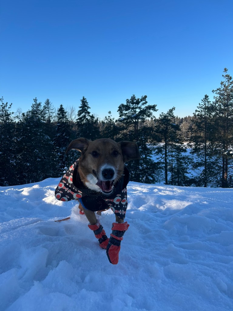 Kuulumisia kotihoidosta: Ensimmäiset kuukaudet kotihoidossa on mennyt uuteen elämään totutellessa. Sopeutuminen uuteen paikkaan on ollut Akulle jännittävää ja hän on edennyt askel kerrallaan. Ensimmäiset kaksi kuukautta Aku sulatteli suurta elämönmuutosta, mutta alkoi tämän jälkeen ottaa suuria harppaksia kotiutumisessaan. Akun kotihoitopaikka on omakotitalo rauhallisella maaseutumaisella alueella. Aku viihtyy hyvin pihalla hoitopaikan muiden koirien kanssa ja hihnalenkkeilykin sujuu mukavasti. Yksinoloa on harjoiteltu ensi hetkistä alkaen ja Aku osaa hienosti rauhoittua kotiin sekä yksin että muiden koirien seurassa jopa työpäivän ajan. Käsittelyäkin on harjoiteltu ja mm. kynsien leikkuu käy mallikkaasti. Aku viihtyy hyvin koiraseurassa ja on luonteeltaan varsin sopuisa. Hän pyrkii kanssaelämään koirakavereiden kanssa pääosin rauhallisesti ja neutraalisti, mutta onpa yrittänyt satunnaisesti vähän leikinpoikastakin aloittaa ulkona. Vielä yhteisiin leikkeihin ei ole kuitenkaan päästy ja Aku on tyytynyt saamaansa haistelu- ja tutkailuseuraan. Aku on selkeästi päässyt puhkeamaan kukkaan kotihoidossa. Etenkin lumikinokset ovat herättäneet Akun hilpeän puolen esiin ja hän voisi viettää tuntikausia lumikasoissa pyörien ja leikkien. Aku viihtyy muutenkin hurjan hyvin ulkona ja viihtyy pitkillä metsäretkillä ja patikoilla. Akusta saisi varmasti mainion kaverin myös pidemmille vaelluksille.