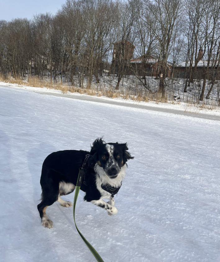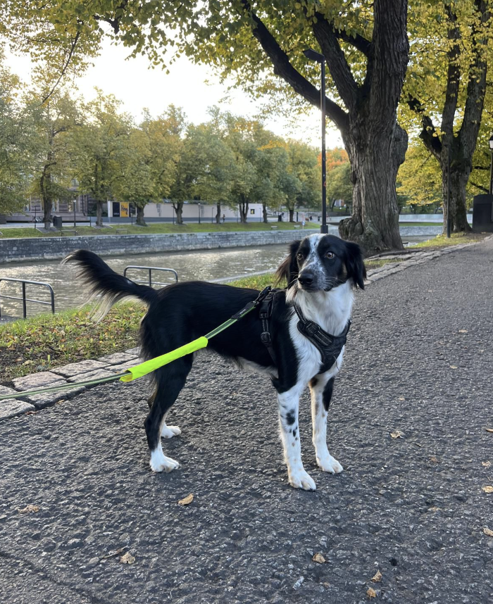 Rusina saapui Suomeen tammikuussa 2025. Kotiutumisen edetessä vilkas kaupunkiympäristö on osoittautunut todennäköisesti paimensukuiselle Rusinalle liian kuormittavaksi ympäristöksi ja Rusina etsiikin nyt uutta kotia rauhalliselta taajama-alueelta tai maaseudulta, ei kerrostalosta. Vauhdikas tyttö etsii kotia perheestä, jossa ei ole pieniä lapsia, mutta olisi mahdollisesti isompi koirakaveri tai oma lauma odottamassa.